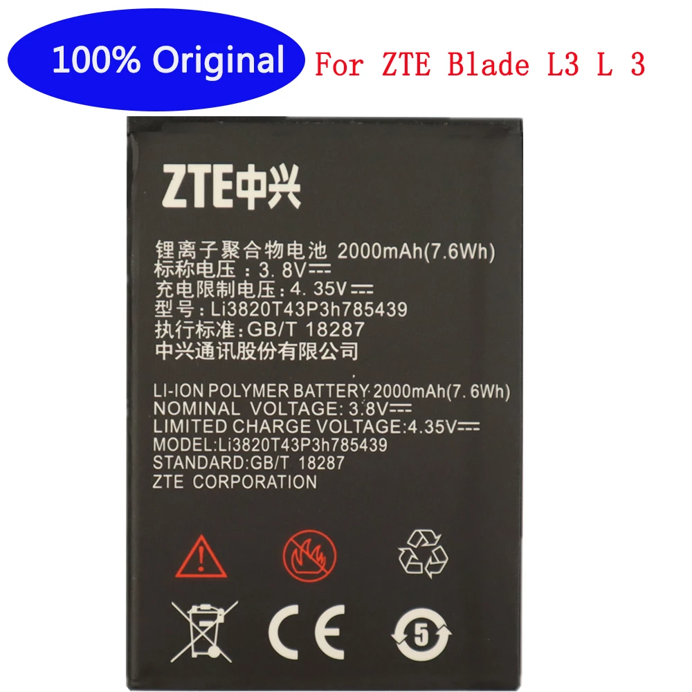 Высокое качество Li3820T43P3h785439 2000 мАч Оригинальный аккумулятор для телефона для ZTE Blade L3 L 3 аккумулятор для мобильного телефона