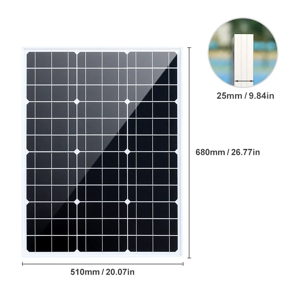 12 В 50 Вт жесткая стеклянная солнечная панель комплект алюминиевая рама монокристаллическая фотоэлектрическая панель система Панель Солнечный дом RV Roof Street Ligh