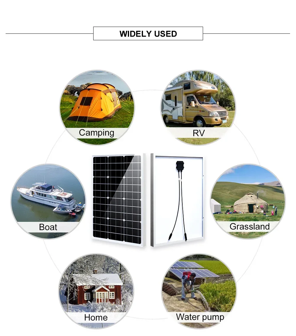 6. Этот продукт представляет собой солнечный модуль. Рекомендуется использовать его вместе с контроллером и аккумулятором. Его можно использовать в различных сценариях, таких как дома, кемпинг, дома на колесах, яхты, уличные фонари, солнечные электростанции и т. Д.