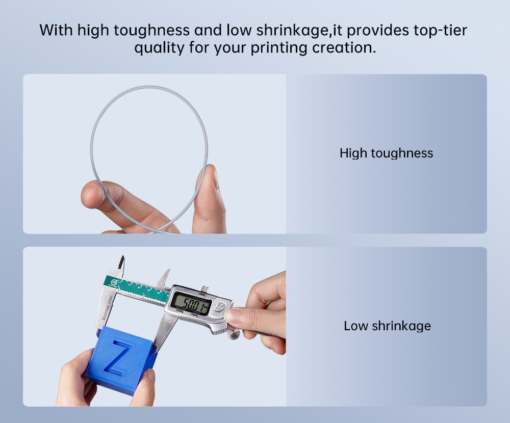 Его однородный диаметр бесшовной нити исключает риск спутывания. Совместим как с высокоскоростными, так и со стандартными 3D-принтерами, представленными на рынке.