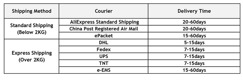 5. Время доставки предоставляется перевозчиком и не включает выходные и праздничные дни. Мы не можем контролировать время доставки, потому что оно обрабатывается третьей службой, но если посылка не пришла в ожидаемое время, свяжитесь с нами, мы поможем вам отследить и дадим вам удовлетворенный ответ.