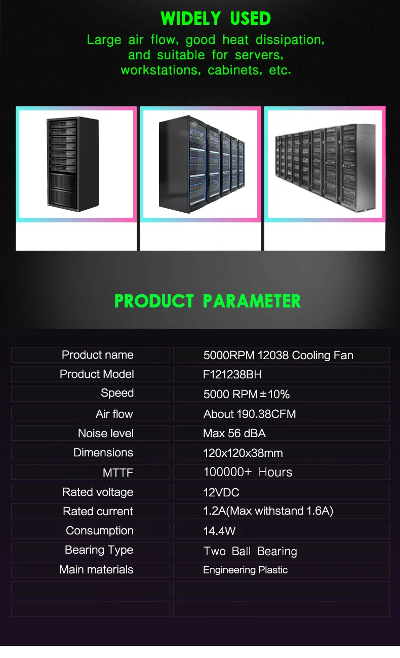 Высокоскоростной вентилятор 12 В, 5000 об/мин, 12038, 120 мм, с двумя шарикоподшипниками, 12 см, вентиляторы системы охлаждения для серверной рабочей станции, для шкафа для майнинга BTC