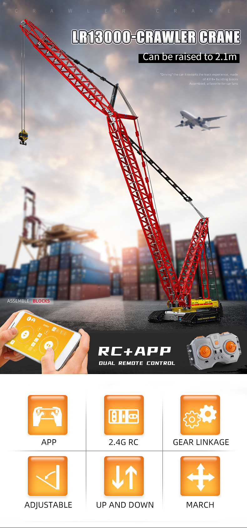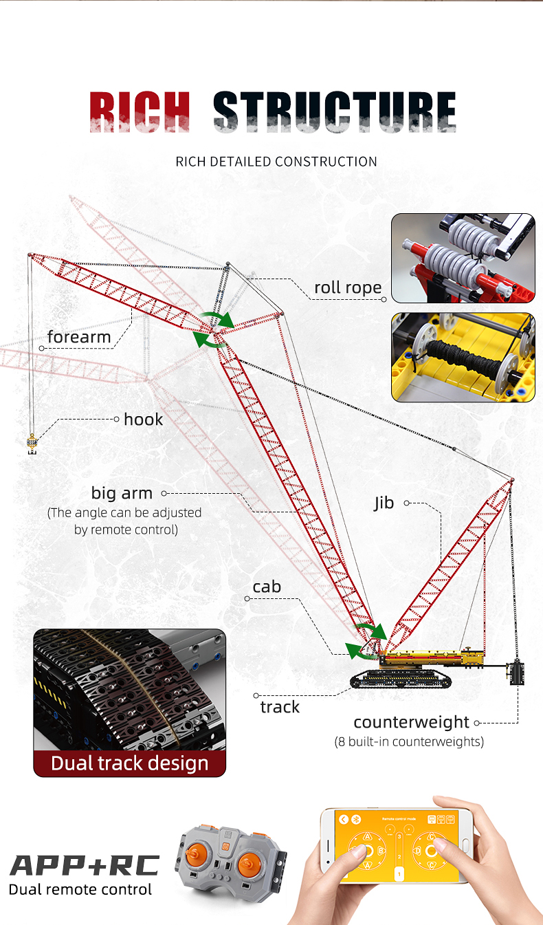 Высокотехнологичный экскаватор LIEBHERRS LR13000 MOULD KING 17015, моторизованный кран на гусеничном ходу, строительные блоки, сборные кирпичи, игрушки, подарки для детей