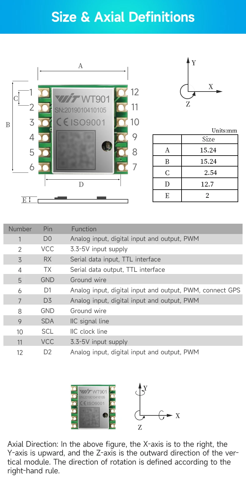 A: За исключением данных ускорения, гироскопа, угла и магнитных данных, WT901B будет оснащен барометром, который может выводить данные о давлении воздуха и высоте.