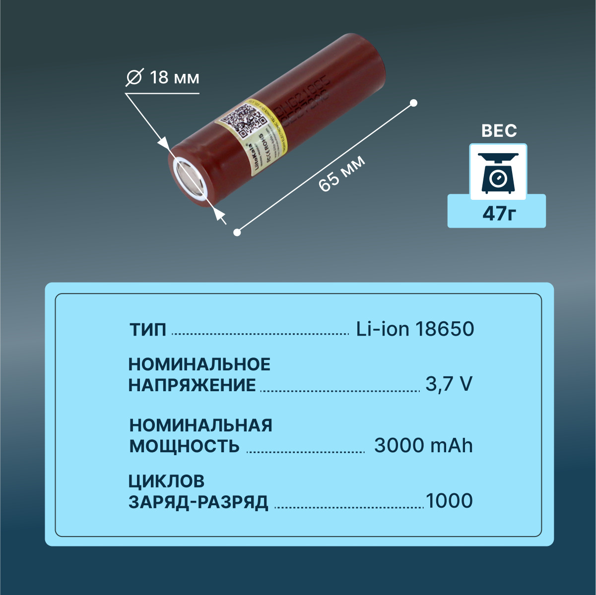 Высокотоковый аккумулятор 18650 HG2 мощная литий ионная батарея /АКБ 18650/ для электронных сигарет, шуруповертов и мощных потребителей тока / с емкостью 3000mAh и током разряда до 35А