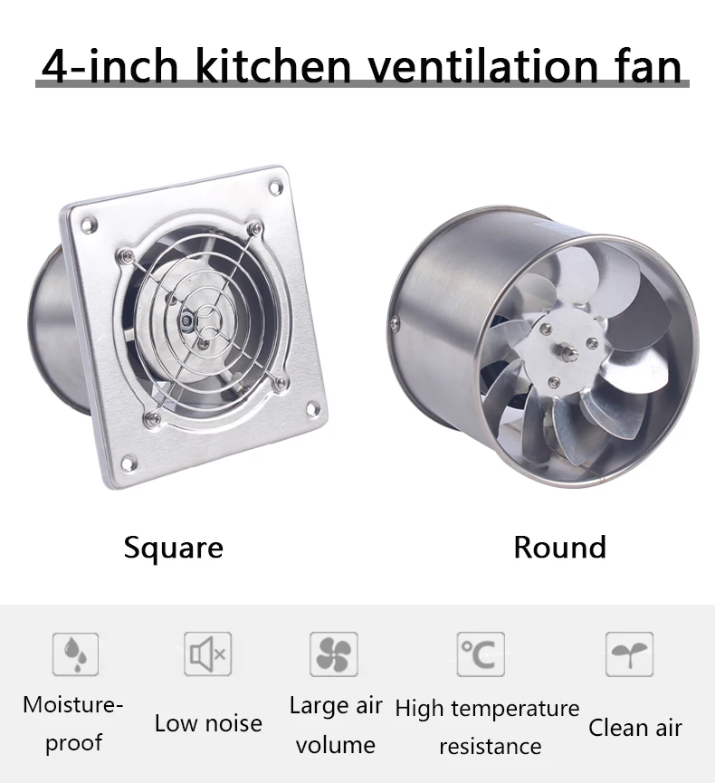 Вытяжной вентилятор DMWD, вытяжка из нержавеющей стали, 4 дюйма, для ванной, кухни, устранения запаха