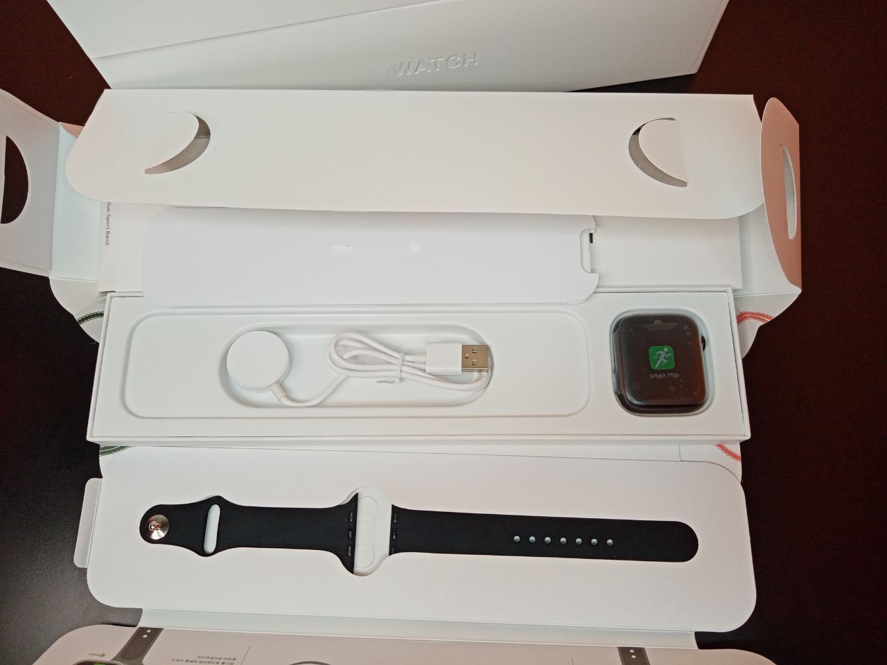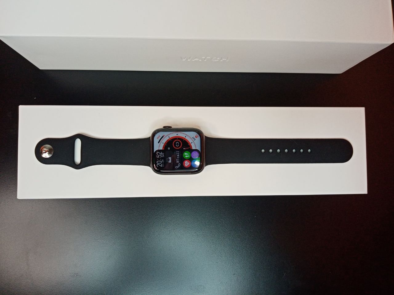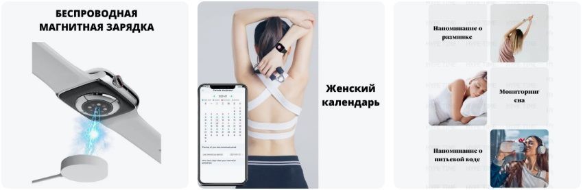 Часы, силиконовый ремешок, беспроводная зарядка, документация, коробка