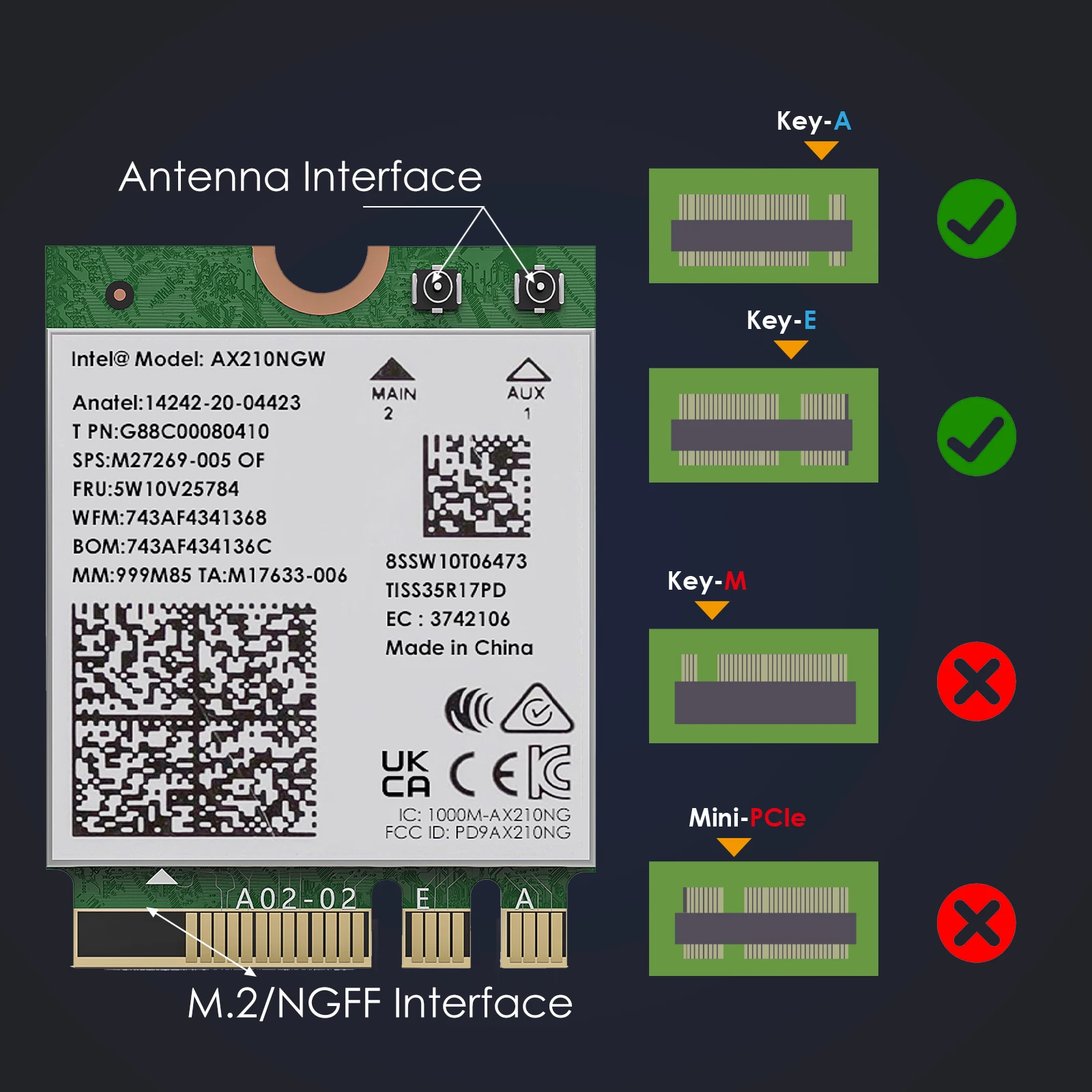 Интерфейс шины: M.2/NGFF Key-A или Key-E