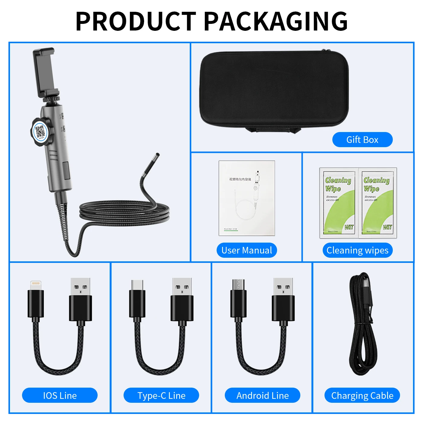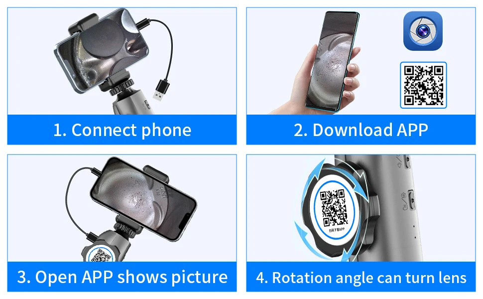 2. 【Совместимость с iPhone и ANDROID 】: Инспекционная камера совместима со всеми мобильными устройствами iOS и Android. Простой в использовании просто нужно загрузить приложение и подключиться к смартфону, вы получите четкое цветное изображение.