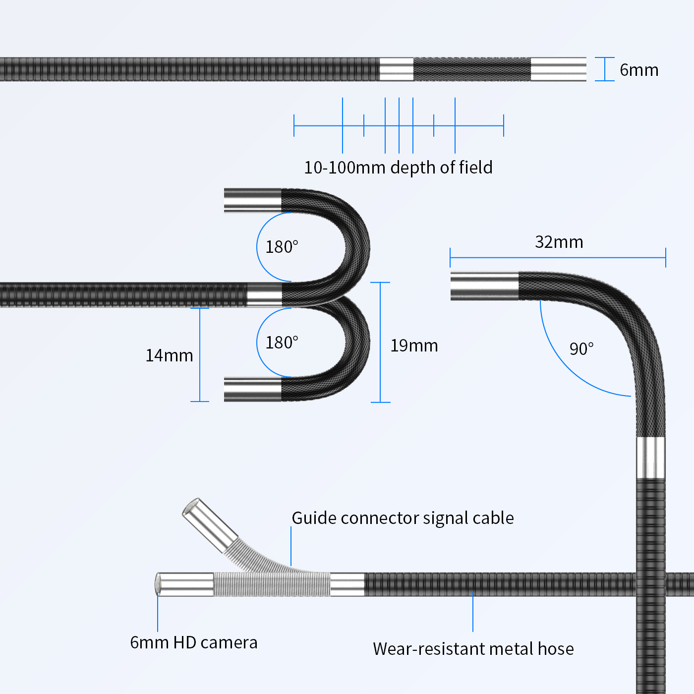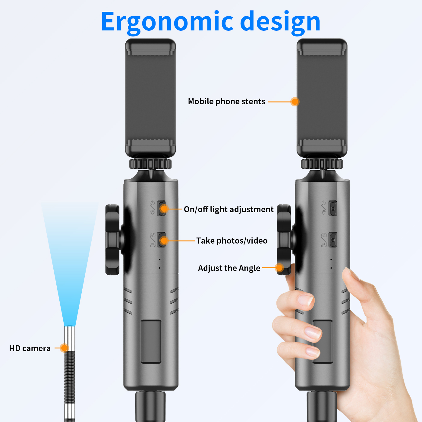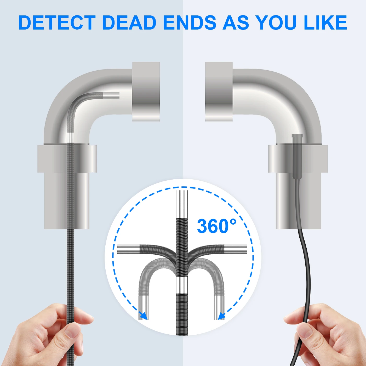 1.【Two way-180 ° горизонтальное вращение 】: шарнирный бороскоп зонд может непрерывно сочленяться от 0 ° до 360 °. Это полезный инструмент для проверки узких пространств, трудно визуализировать, направление может быть отрегулировано шестерней на хосте. Кабель 3,3 фута с камерой диаметром 0,33 дюйма, которая легко проходит через труднодоступные области. Примечание: не водонепроницаемый!