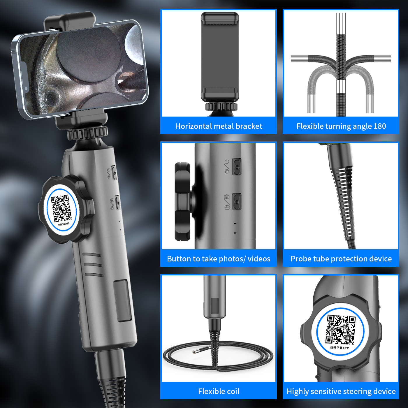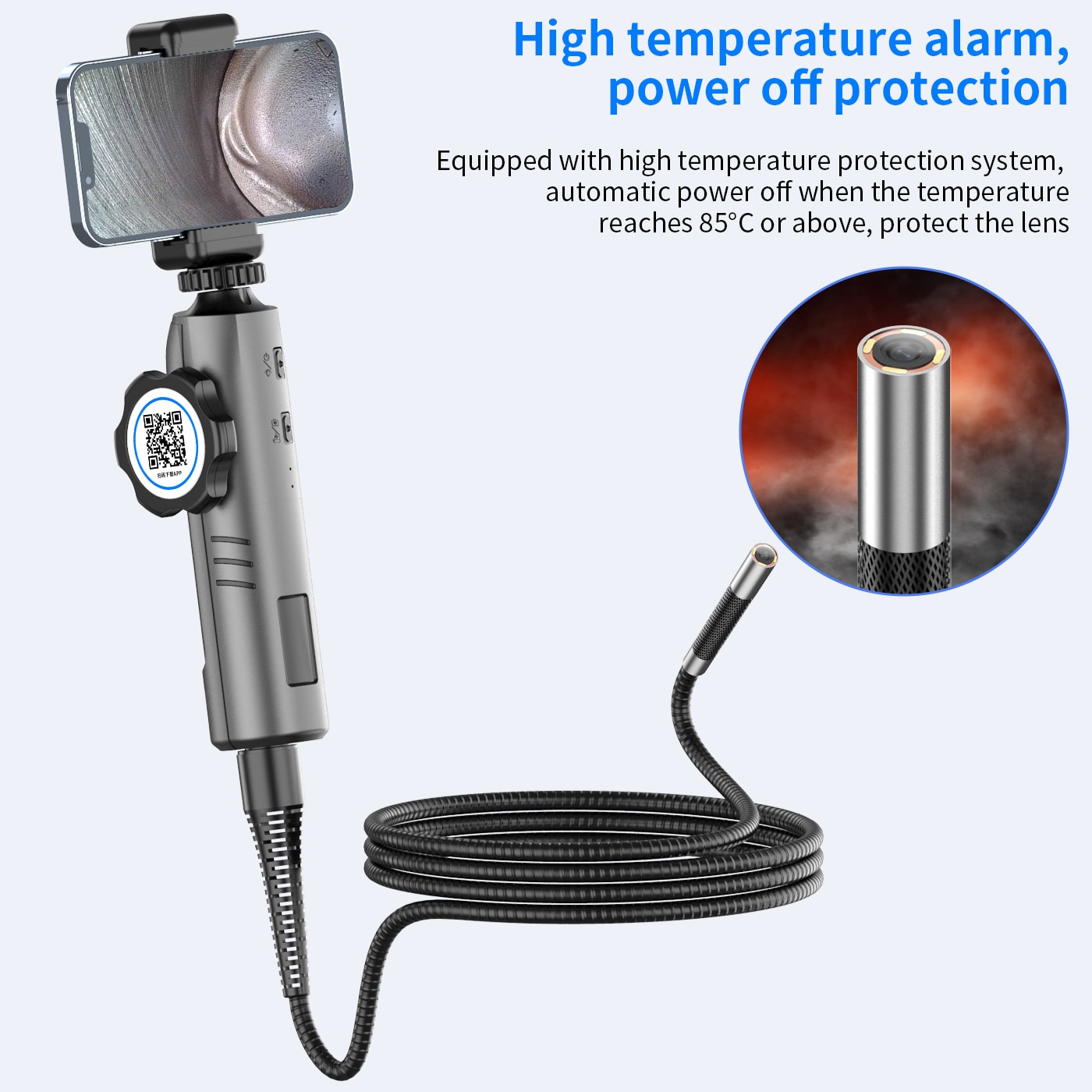 3.【 видео и изображения высокой четкости 1080P: Эта бороскоп камера может снимать видео (MP4) и изображения (JPG) при 1280x720p ,(1920*1080) пикселей. Радиаторы и контроль температуры не дают камере эндоскопа получить слишком тепло.