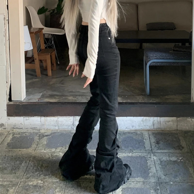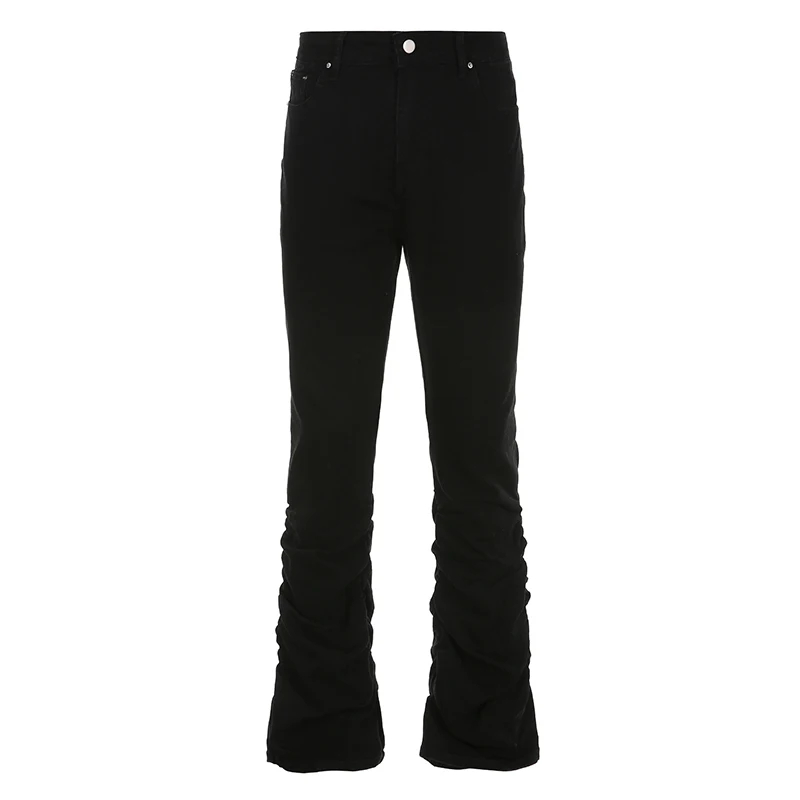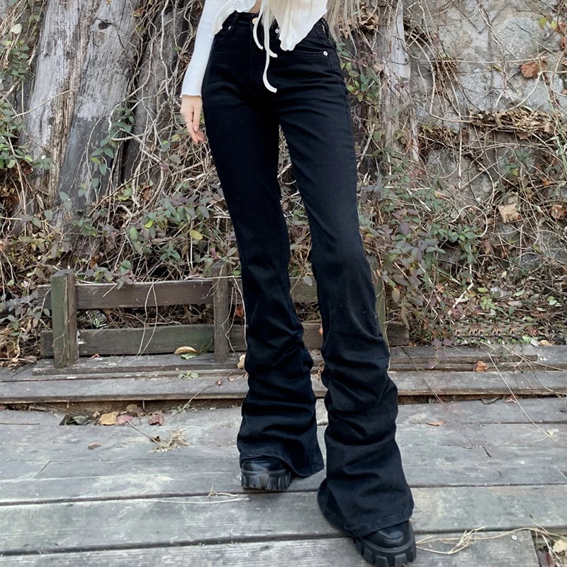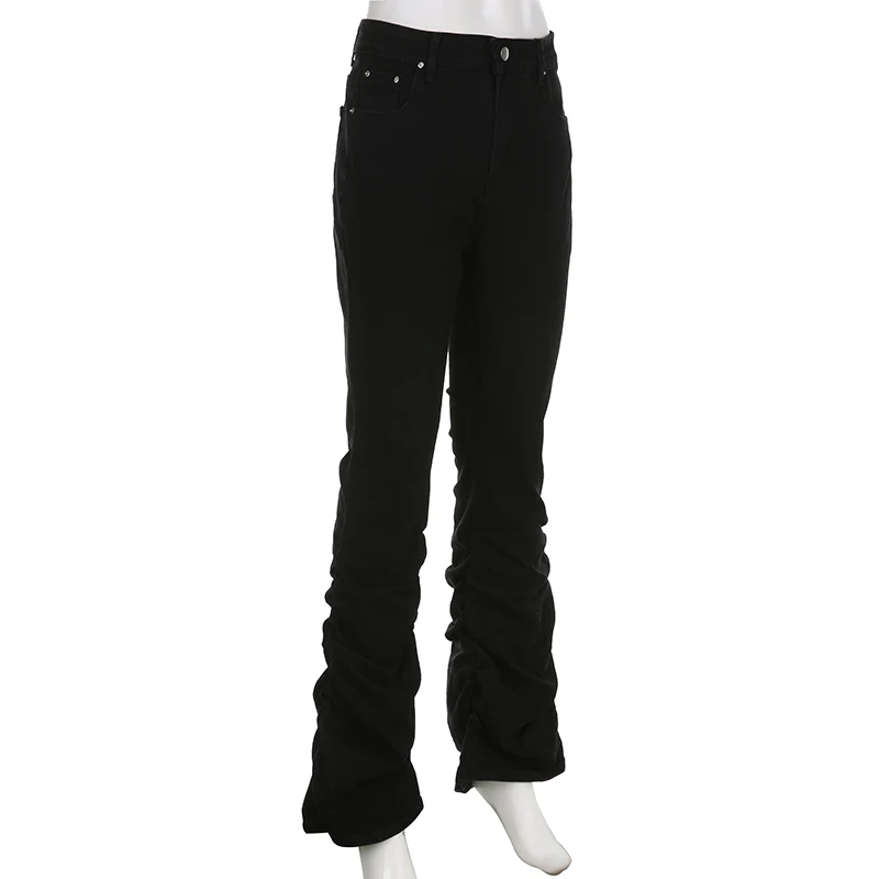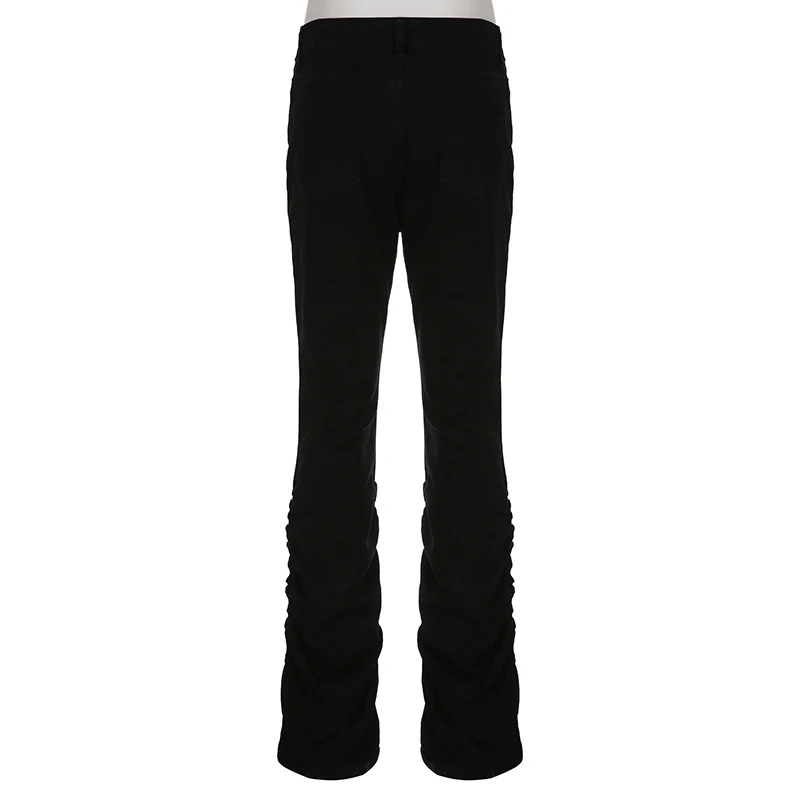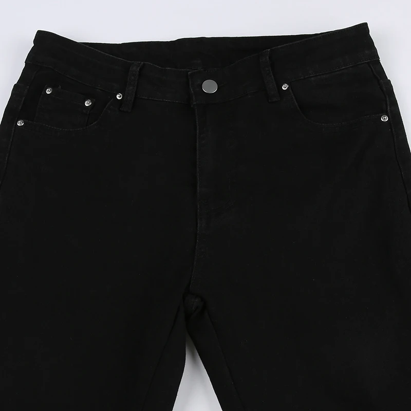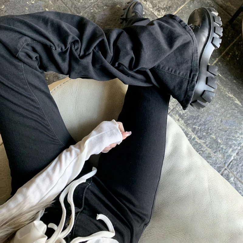 Weekeep/готические брюки, уличная одежда, черные обтягивающие капри с высокой талией, джинсы со складками, женские брюки в стиле панк, повседневные брюки