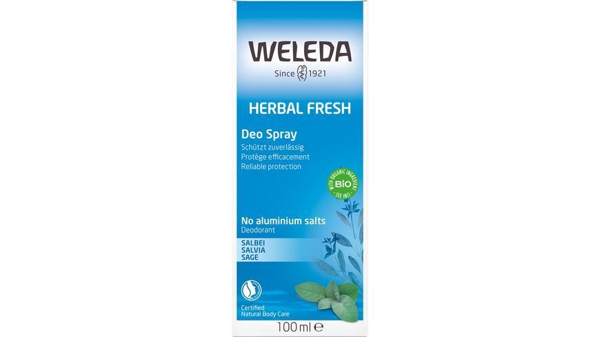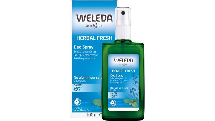 Дезодорант-спрей Weleda с шалфеем, содержащий эфирные масла и ингредиент из корня солодки (глицирризиновая кислота), естественным образом подавляет развитие запаха тела, не нарушая регулирующие функции кожи и не закрывая поры кожи.
