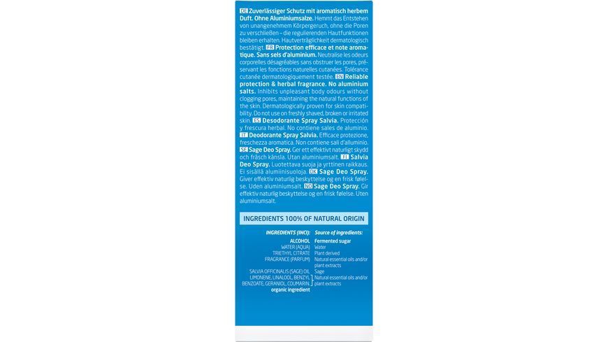 Освежение шалфеем. Дезодорант-спрей шалфей с эфирными маслами и экстрактом корня солодки естественным образом подавляет развитие неприятного запаха тела.