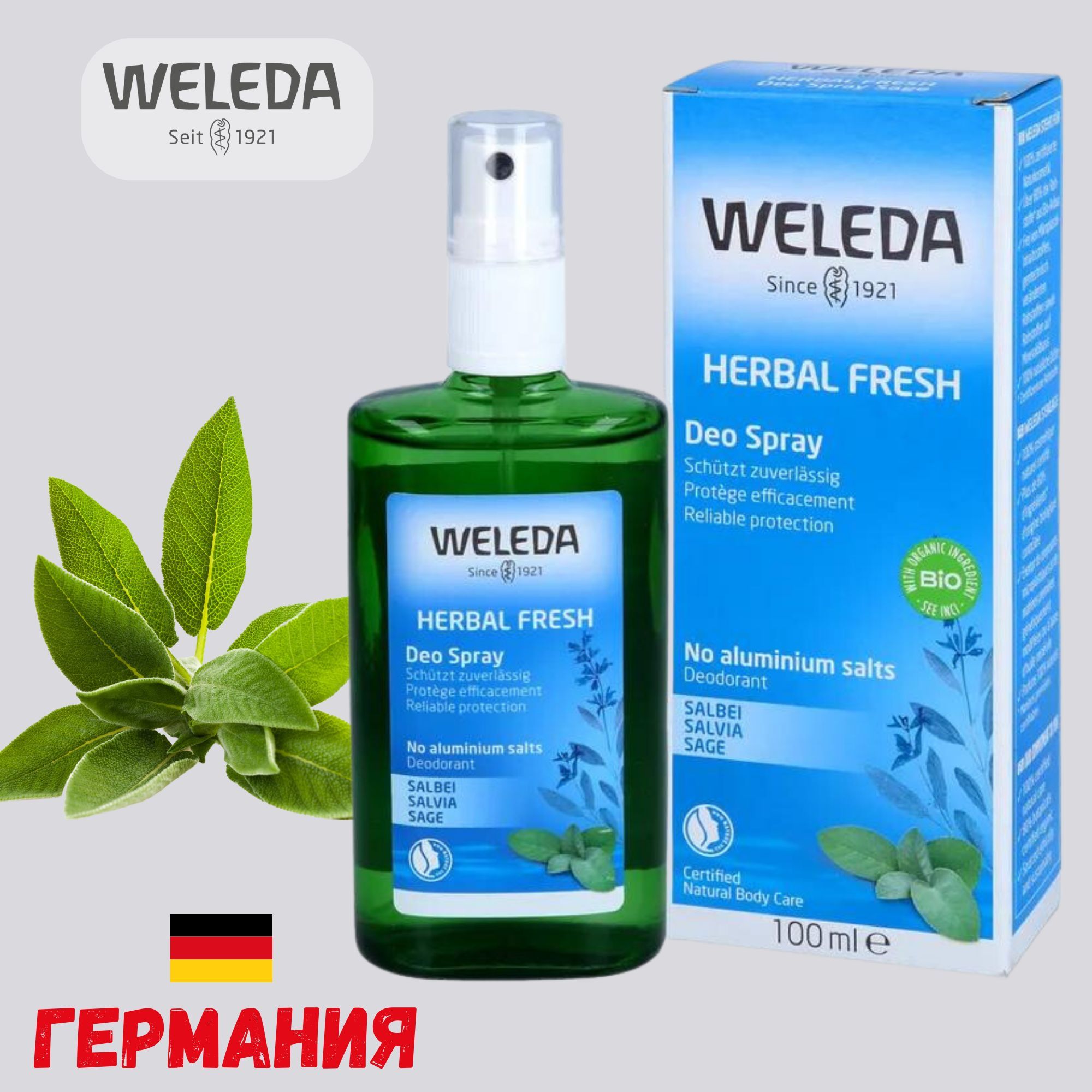Weleda Дезодорант спрей Шалфей SALBEI Herbal Fresh Deo Spray , 100 мл. естественная защита и свежий аромат. Германия