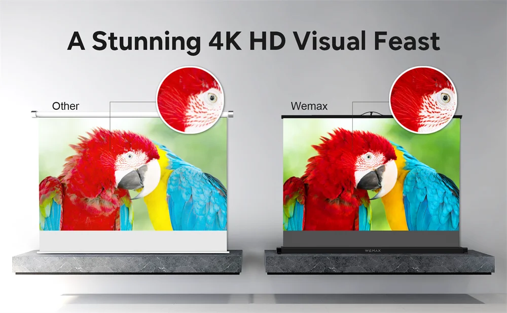 • <Яркий просмотр>: Wemax 50-дюймовый ALR экран обеспечивает 6x коэффициент усиления по сравнению с белой стеной и 3x по сравнению с традиционными белый тканевый экран в сложных окружающей среды светильник окружающую среду; Выровнять ваши впечатления от просмотра в 6 раз с одной и той же перечислены ниже.
