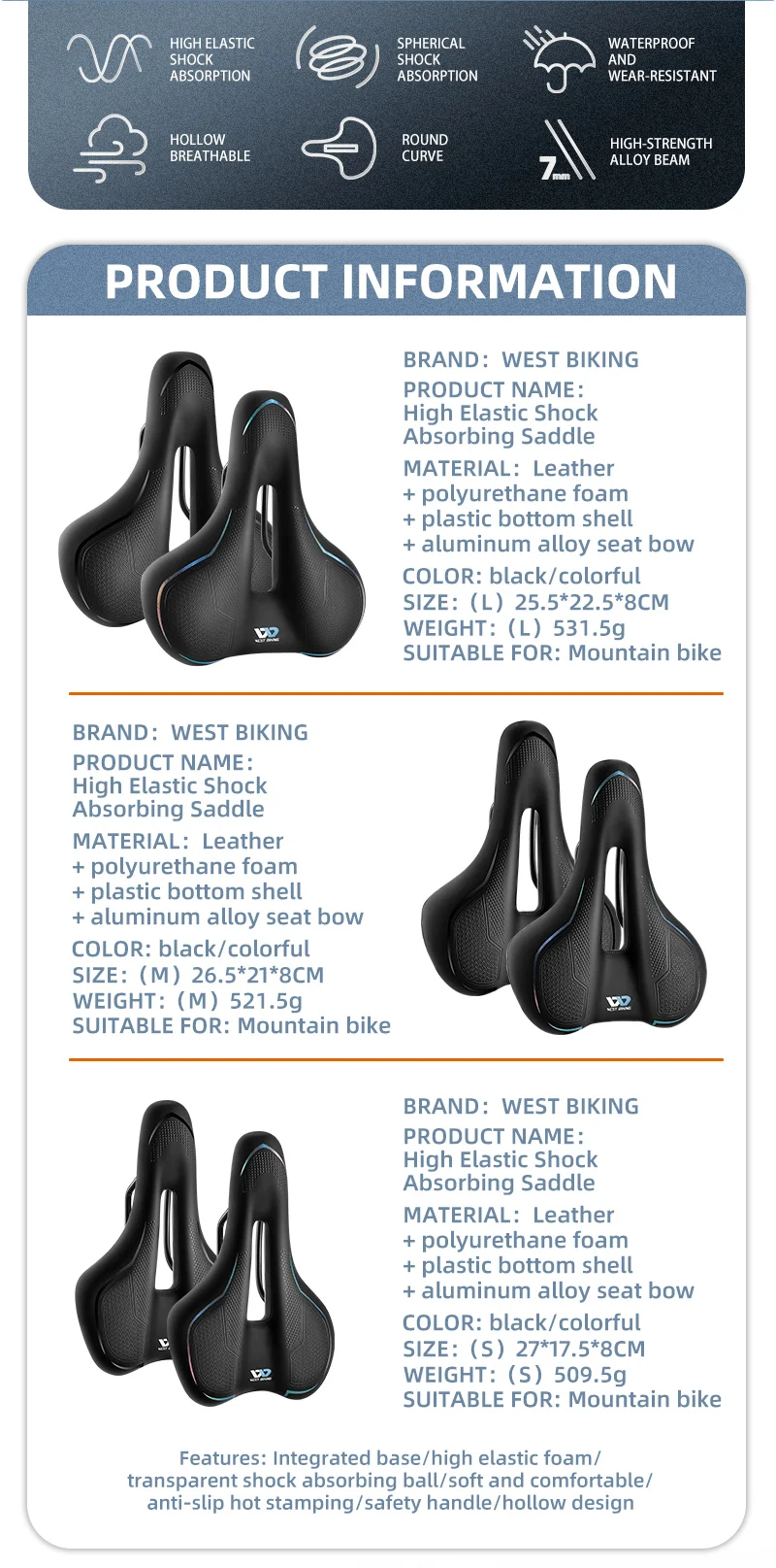 WEST BIKING дышащее велосипедное седло MTB шоссейное велосипедное седло амортизирующее удобное большое сиденье для велосипеда Предупреждение безопасности