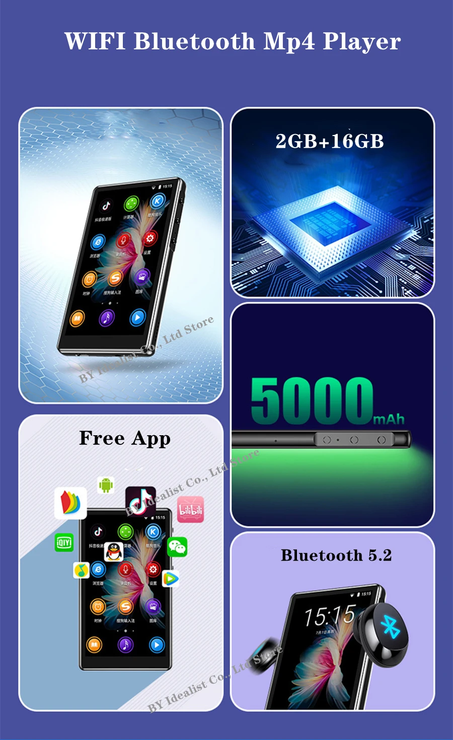 12-13, синхронизация текстов песен, аккумулятор 5000 мАч, длительный режим ожидания