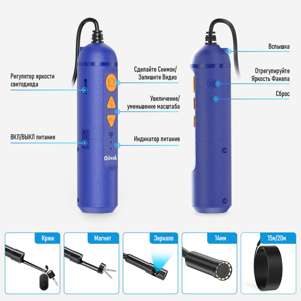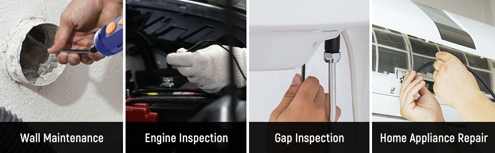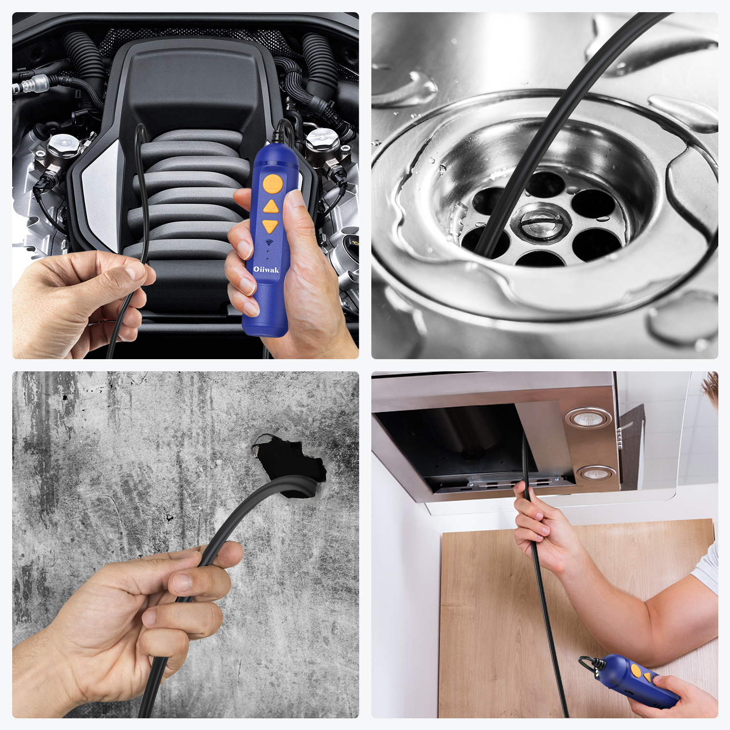 Oiiwak эндоскоп обеспечивает Неразрушающий осмотр труднодоступных мест, таких как ремонт автомобилей, промышленный механический осмотр, фиксация труб, внутренние стены, Чердаки, желоба, канализационные трубы, вентиляционные отверстия, воздуховоды, двигатели, шестерни, вентиляционные трубы, двигатели, углы диванов, трубы для ванной, туалеты.