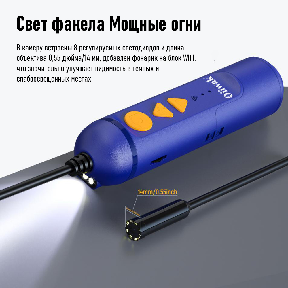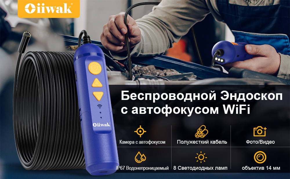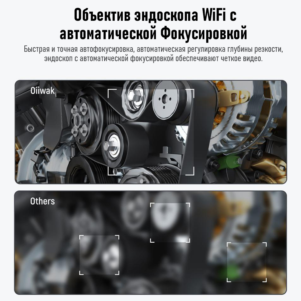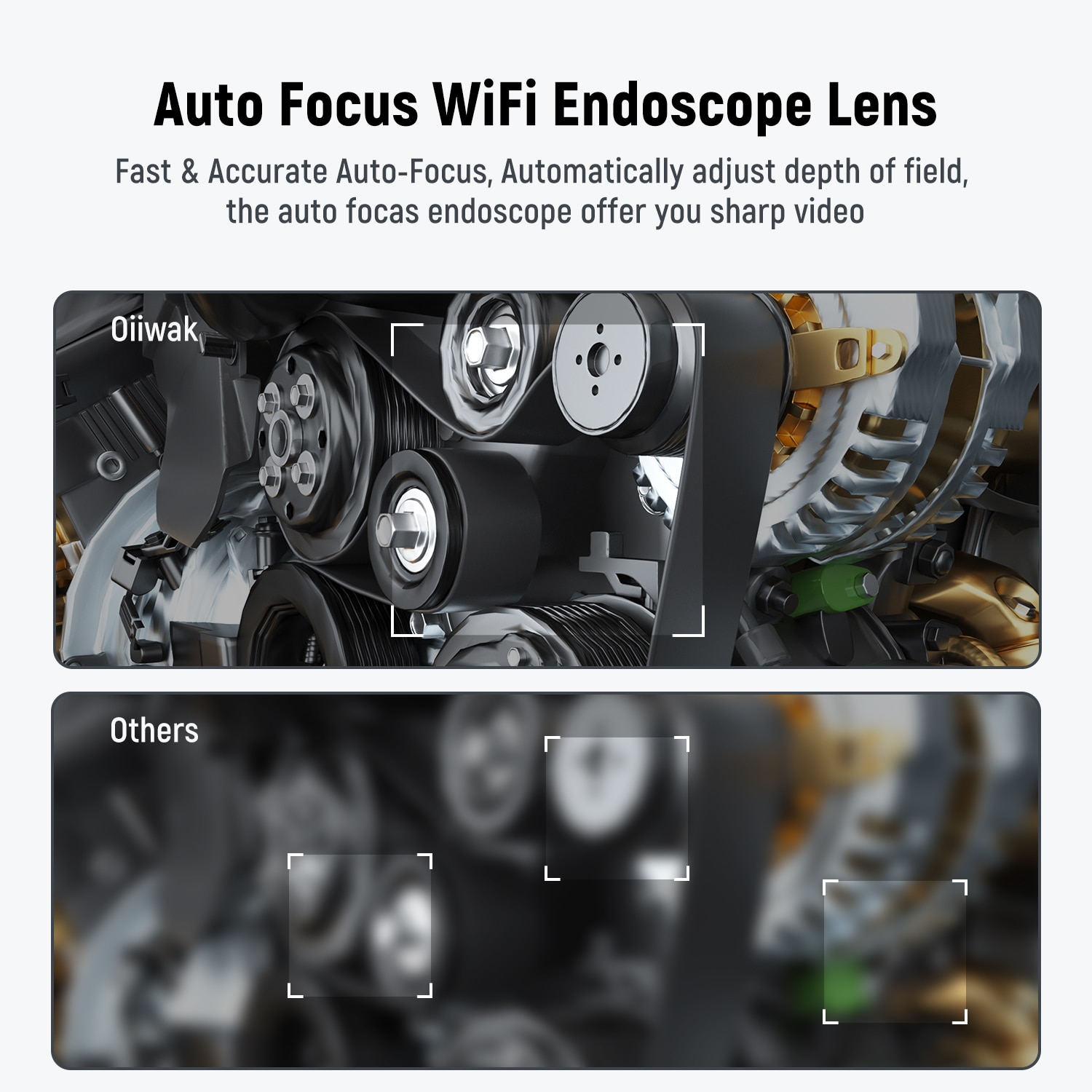 Беспроводная Бороскоп-камера Oiiwak не требует времени и усилий, чтобы установить соответствующий фокусное расстояние, быстро фокусируясь на объекте осмотра, поэтому чрезвычайно практично.