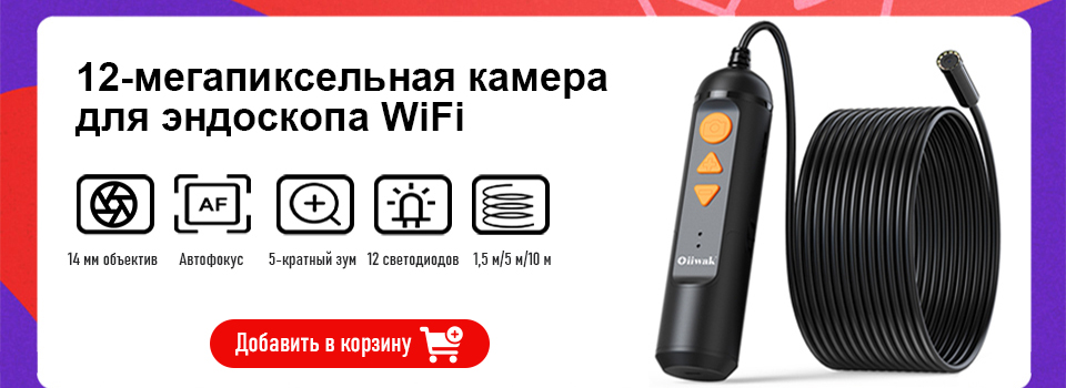 Этот эндоскоп с Wi-Fi оснащен камерой 5 Мп и водонепроницаемым шнуром, который позволяет вам получить беспрецедентный визуальный опыт высокой четкости.