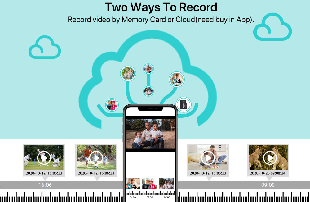 Максимальная запись SD-карты 128 ГБ и запись в облачном хранилище (требуется дополнительная плата), безопасность данных более стабильна. Если вы хотите продолжать использовать Cloud Service, вам просто нужно заплатить за него, если вам не нужно использовать, он автоматически остановит его, когда вы не заплатите за плату.
