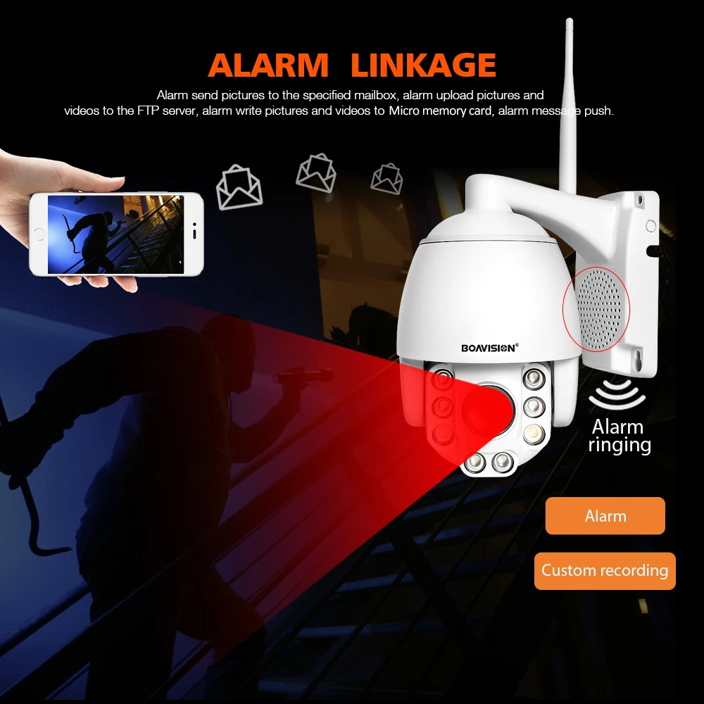 Тревога записывает изображения и видео на карту TF, тревожное сообщение нажимает