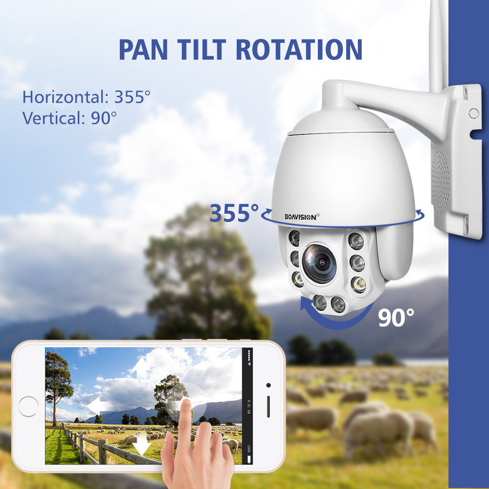 Поворот панорамирования и наклона по горизонтали: 355 ° и по вертикали: 90 ° Ø