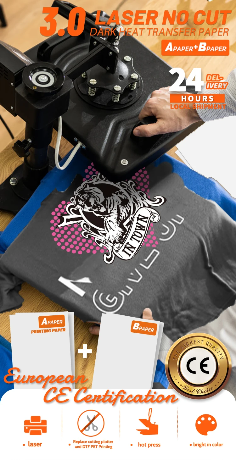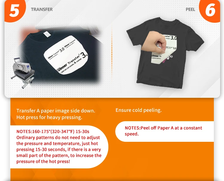 WinnerTransfer Laser No-Cut Dark Heat Transfer Paper for T-shirts A Paper+B Paper Self-weeding A4 5sheets for Heat Press Machine