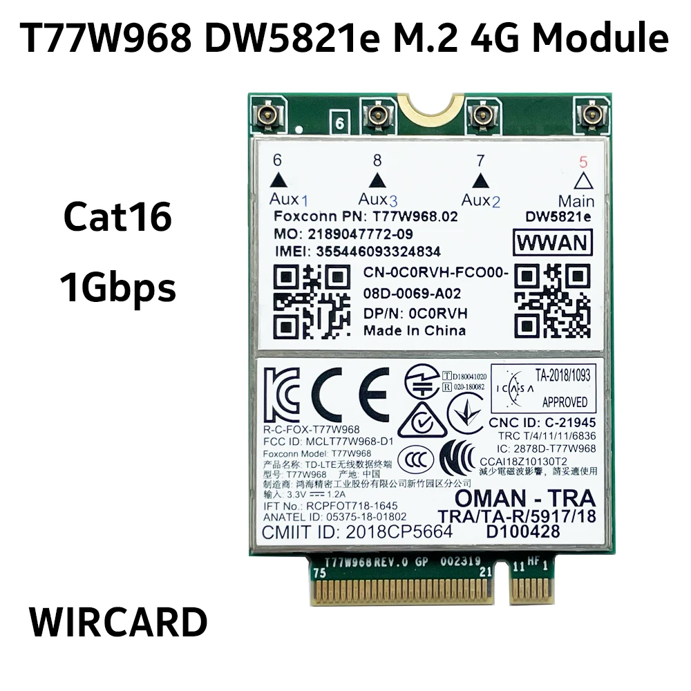 WIRCARD T77W968 DW5821e X20, LTE Cat16, 1 Гбит/с, Φ 4G модуль для ноутбука Dell 5420 5424 7424 7400, 4G карта, USB-адаптер
