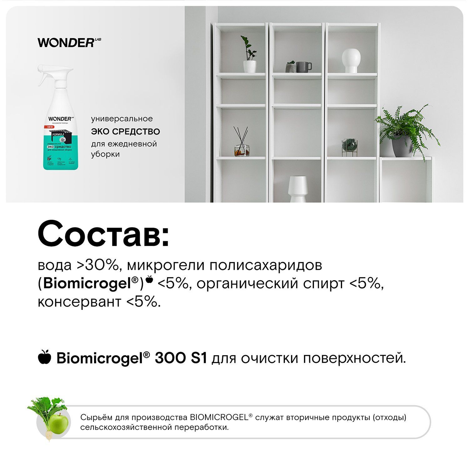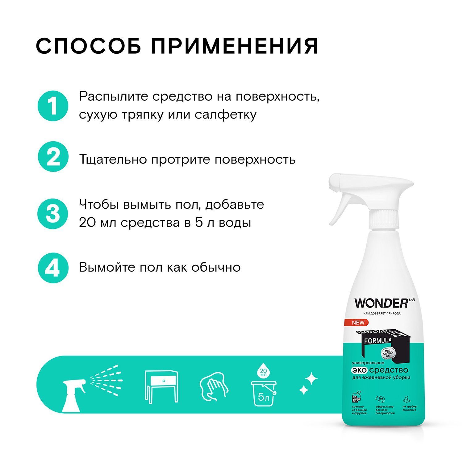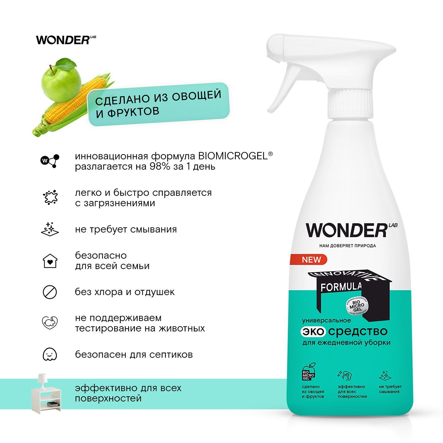 WONDER LAB, Универсальное ЭКО средство для ежедневной уборки, 550 мл