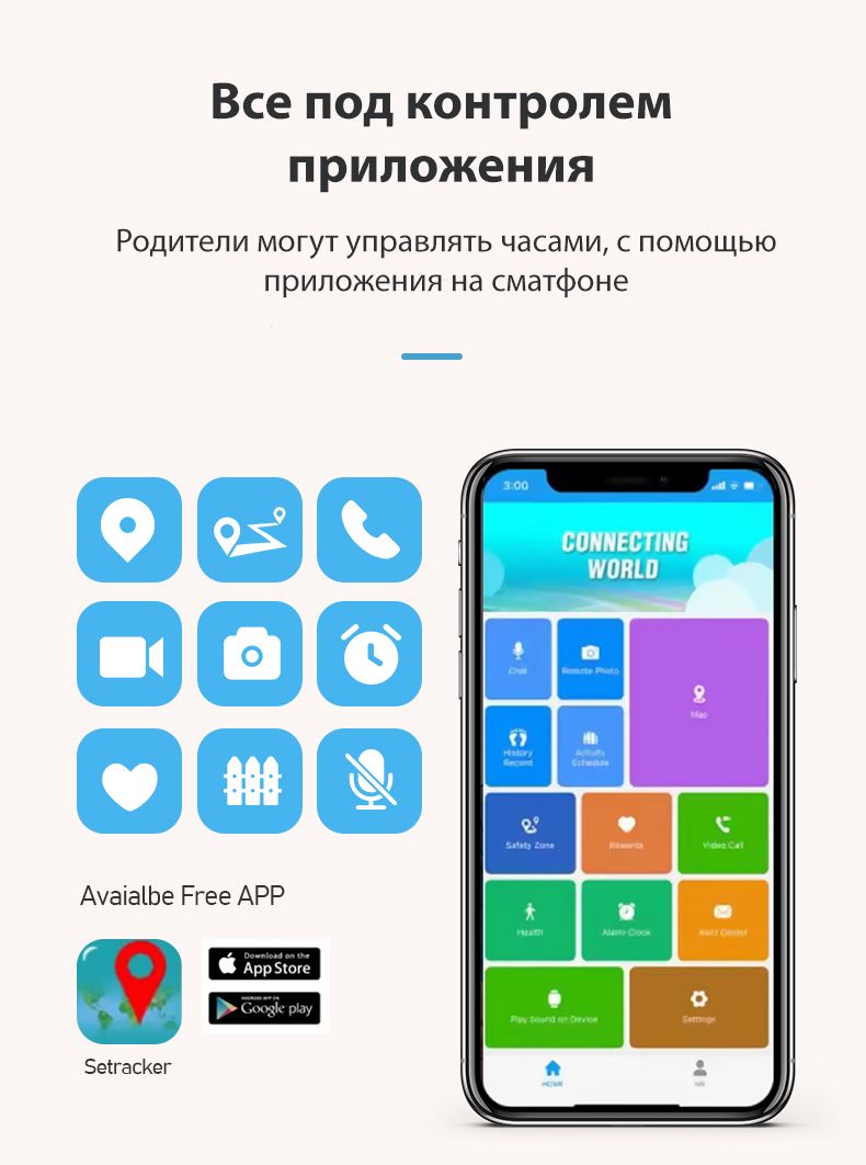 Приложение для работы с часами – Setracker, единственное приложение, рекомендованное производителем часов и в котором работают все заявленные функции, в том числе обратный звонок и видеовызов. Приложение бесплатное, совместимо с Android и iOS.