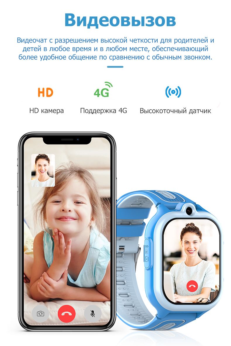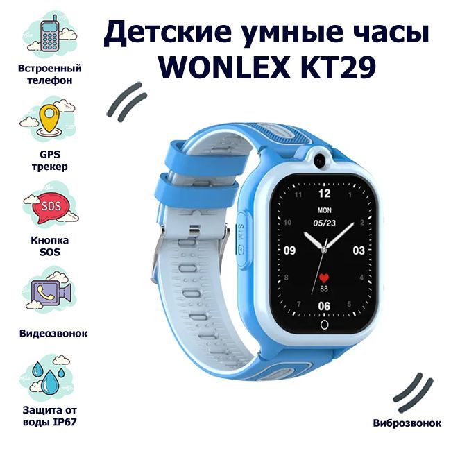 Wonlex Умные часы для детей Детские часы-телефон Smart Baby Watch KT29 GPS, WiFi, камера, 4G (LTE), голубой