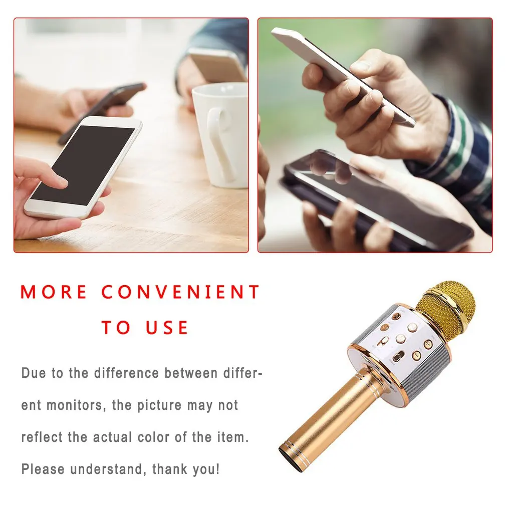 WS858 Bluetooth-Совместимый Беспроводной микрофон USB Ручной караоке домашний KTV микрофон динамик для музыкального плеера для вокала, с рекордером