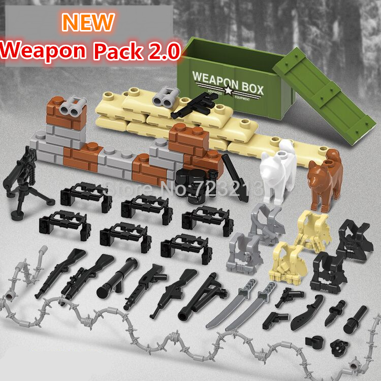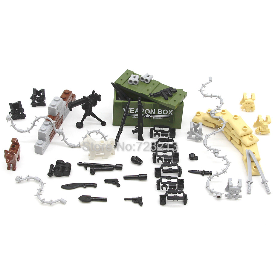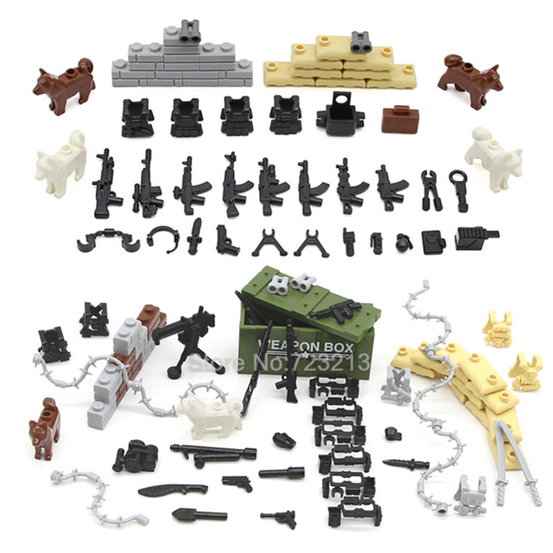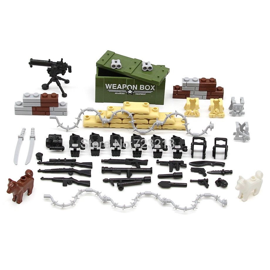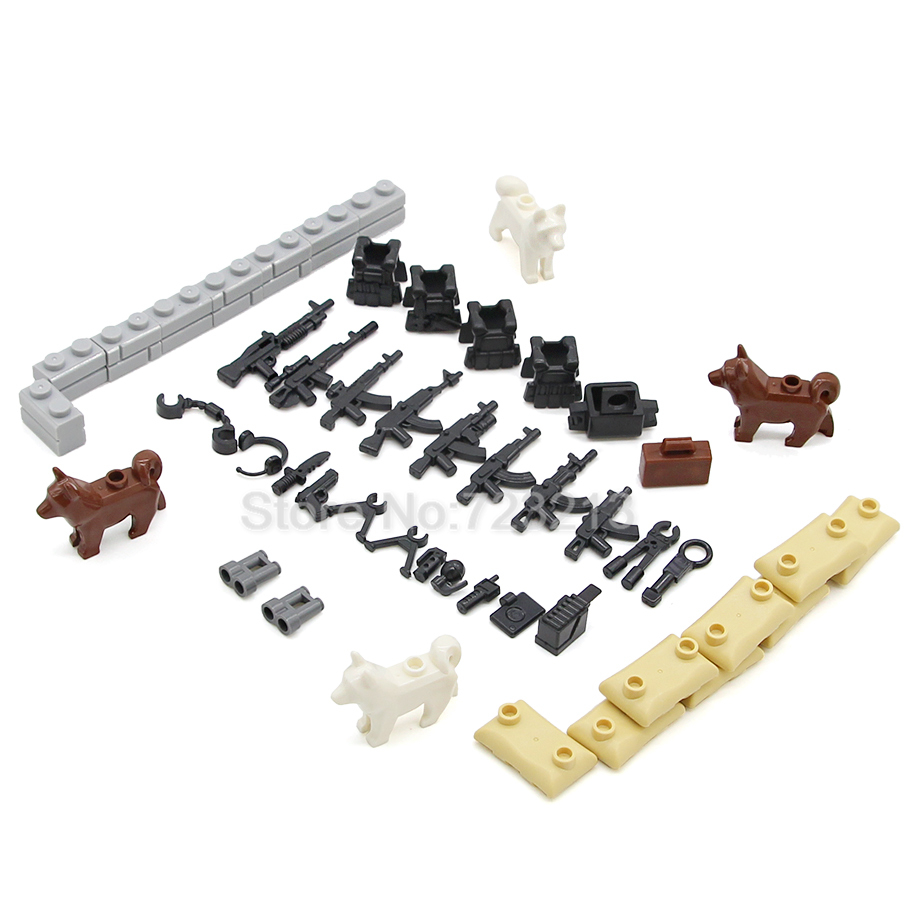 WW2 SWAT военные армейские пистолеты набор оружия коробка собака современные аксессуары песочный мешок Броня Кирпичи Строительные блоки модель игрушки