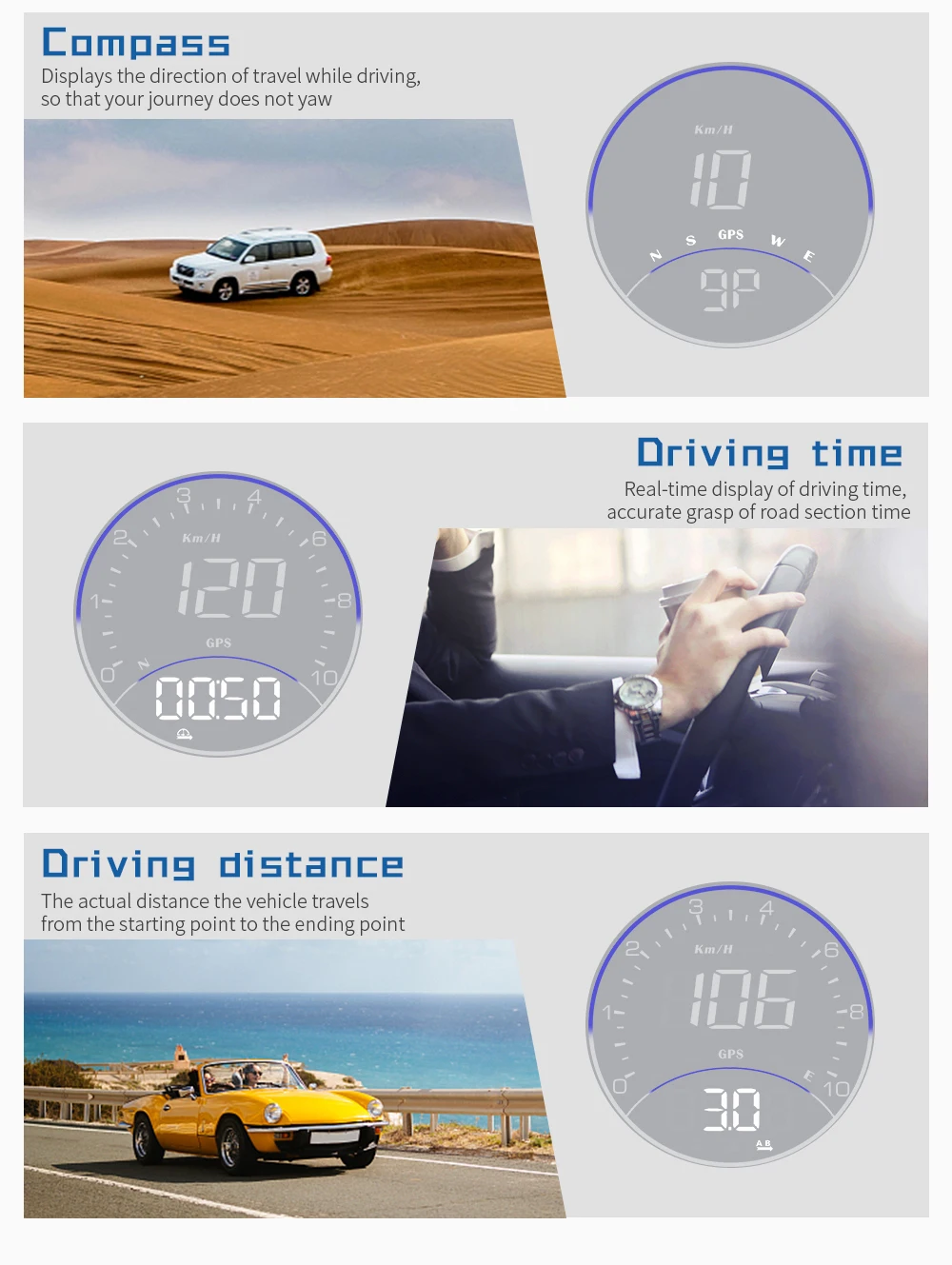 WYOBD G6 GPS HUD Спидометр автоматическое направление вождения Отображение времени на лобовом стекле автомобильные аксессуары совместимы со всеми автомобилями