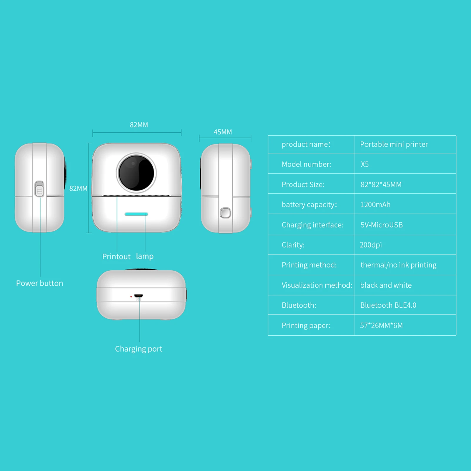 X5 Thermal Photo Printer Pocket Label Maker 200dpi Wireless Receipt Printer Compatible with Android iOS Smartphone for Work Plan