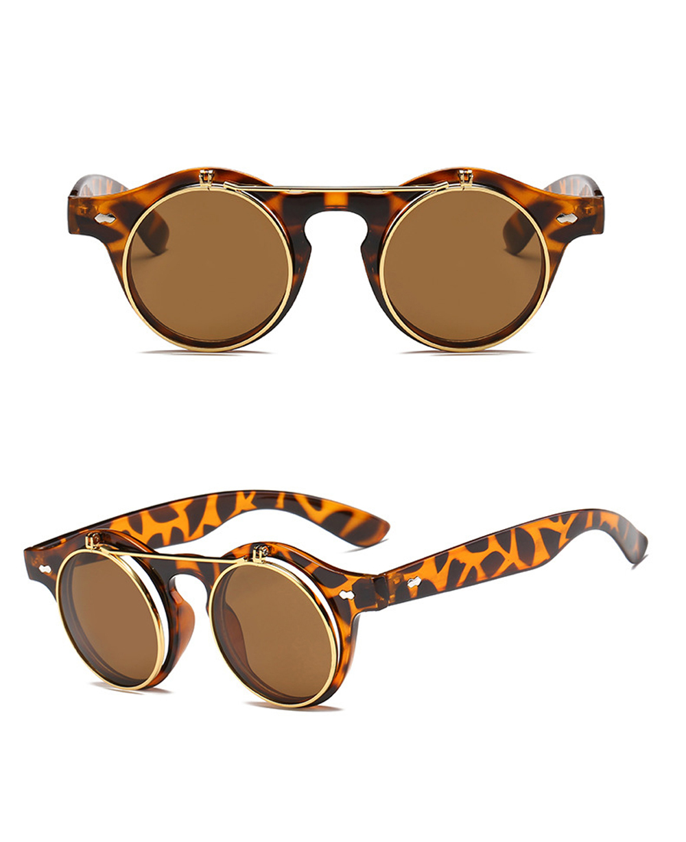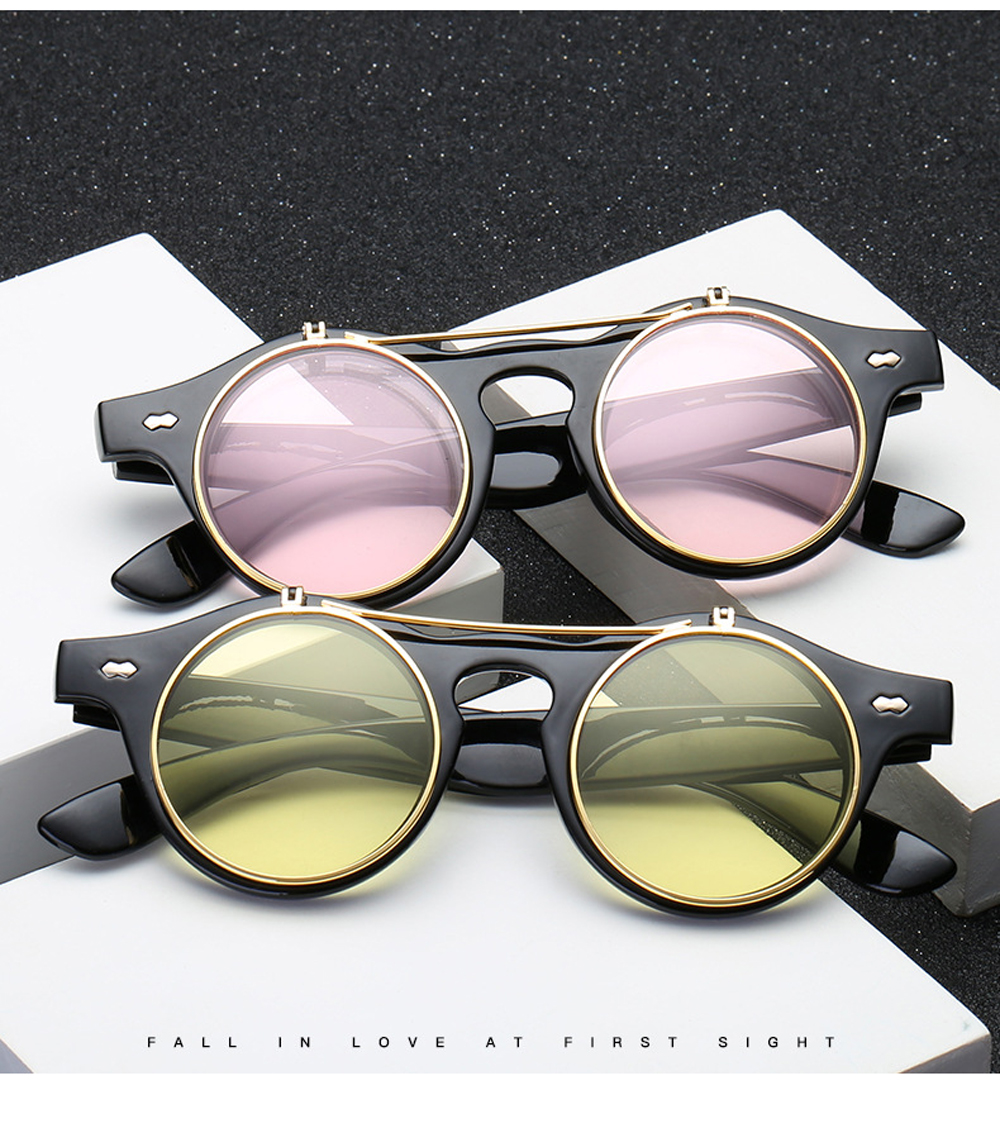XaYbZc 2023 Модные Винтажные круглые солнцезащитные очки в стиле стимпанк с откидной крышкой классические двухслойные дизайнерские солнцезащитные очки с откидной крышкой Oculos De Sol