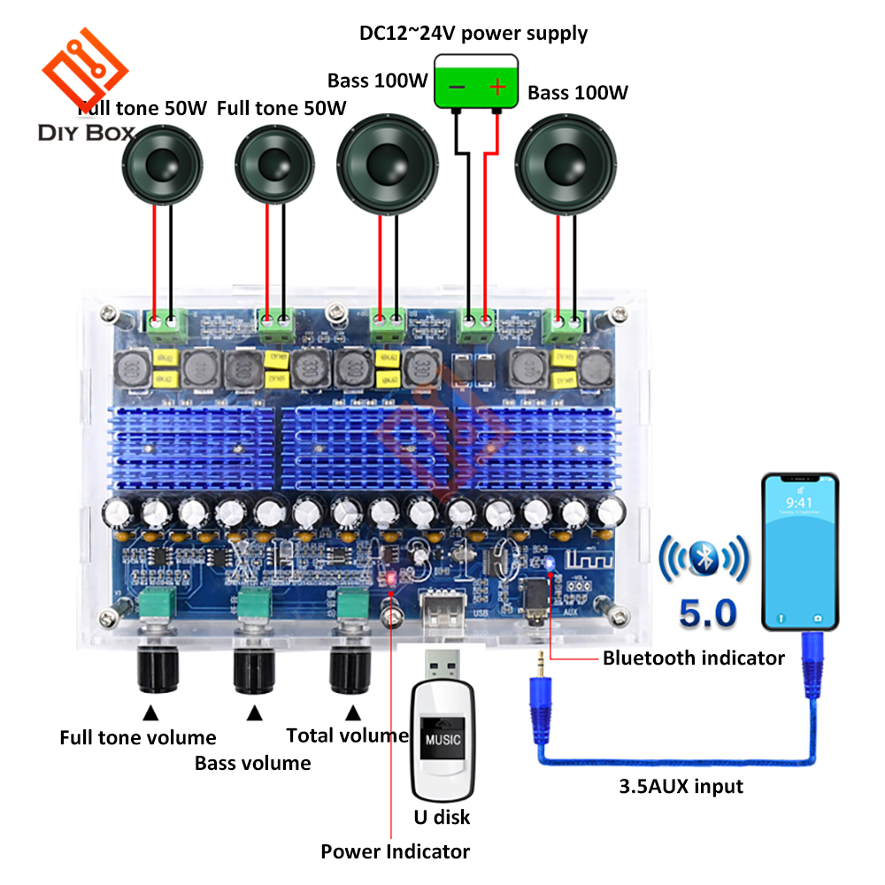 Выходная мощность: Bass100Wx2 + 50WX2
