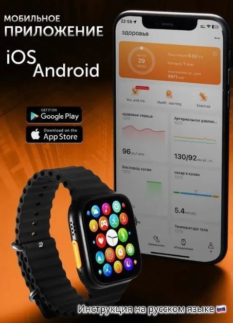 • Умные часы SmartWatch S8Ultra+ работают через приложение HD Fit Pro , которое доступно для любых смартфонов ( iOS 10/ Android 5.0).