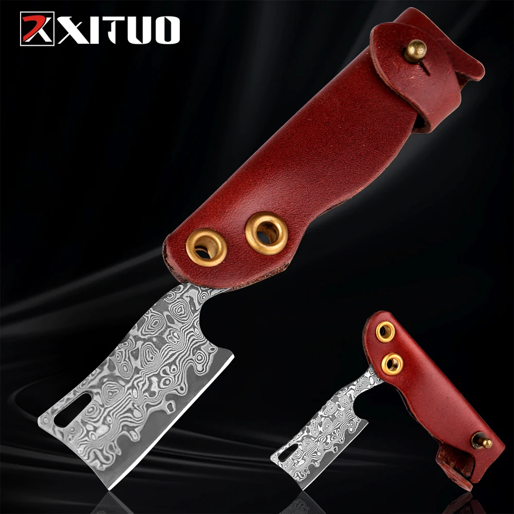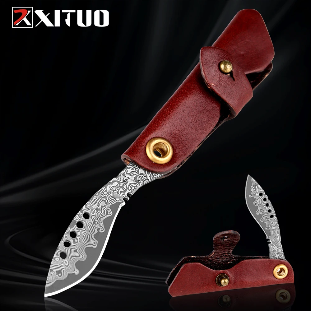 XITUO Специальный мини карманный нож, японские маленькие складные ножи из дамасской стали, открытые конверты, режущие канаты, кожаный ключ, инструмент для фруктов
