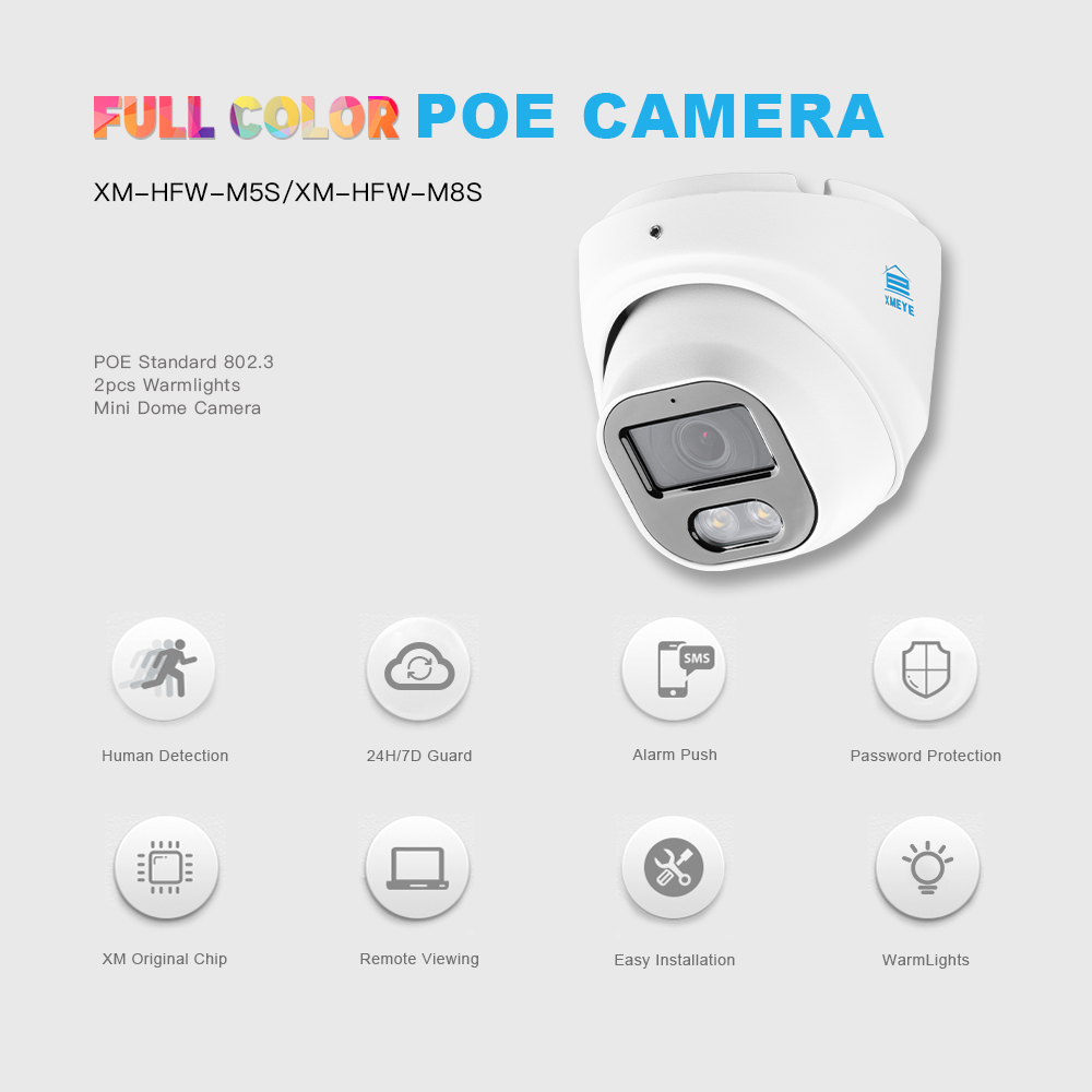 XMEYE полноцветная IP-камера POE 5 МП, 4K, 8 Мп, F1.0, 2,8 мм, CCTV, видеонаблюдение с теплым светом, водонепроницаемая, ColorVu Darkfighter