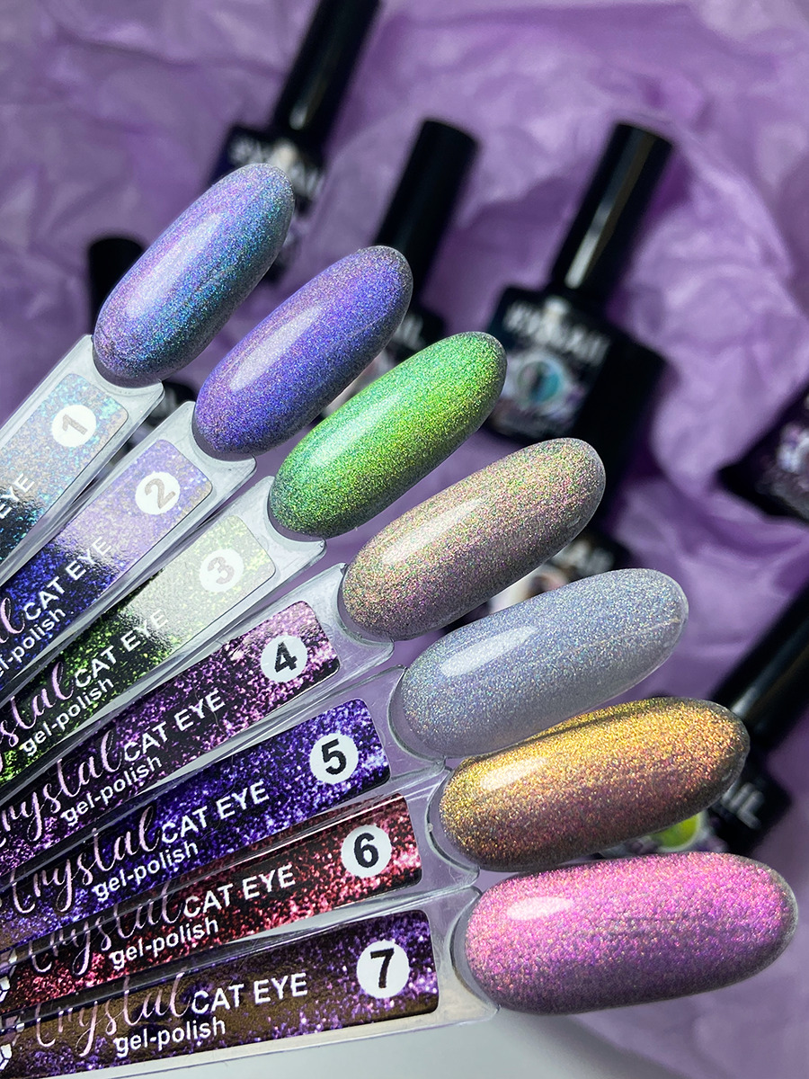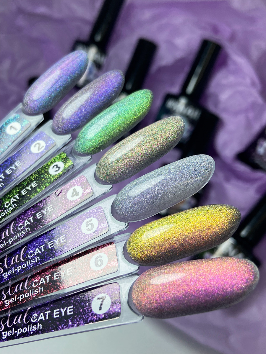 XNAIL PROFESSIONAL Гель лак с эффектом кошачьего глаза и радужной призмы Сrystal Cat Eye