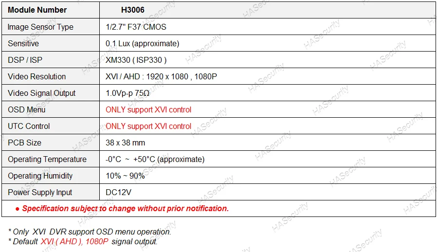 XVI / AHD 1080P 1/2.7 "F37 CMOS датчик изображения + XM330 (ISP330) фотокамера строка (дополнительные детали)