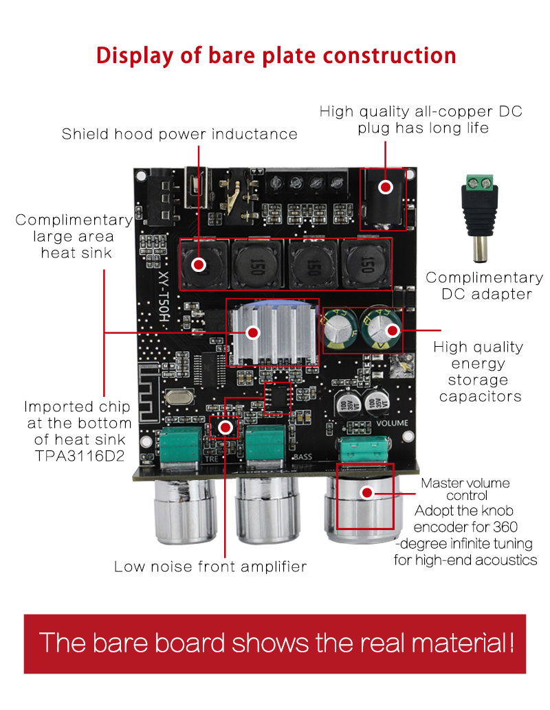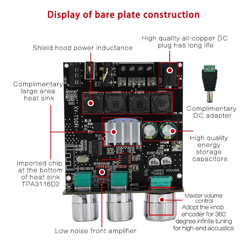 Название продукта: Плата усилителя мощности Bluetooth с регулируемым высоким басом 50 Вт + 50 Вт