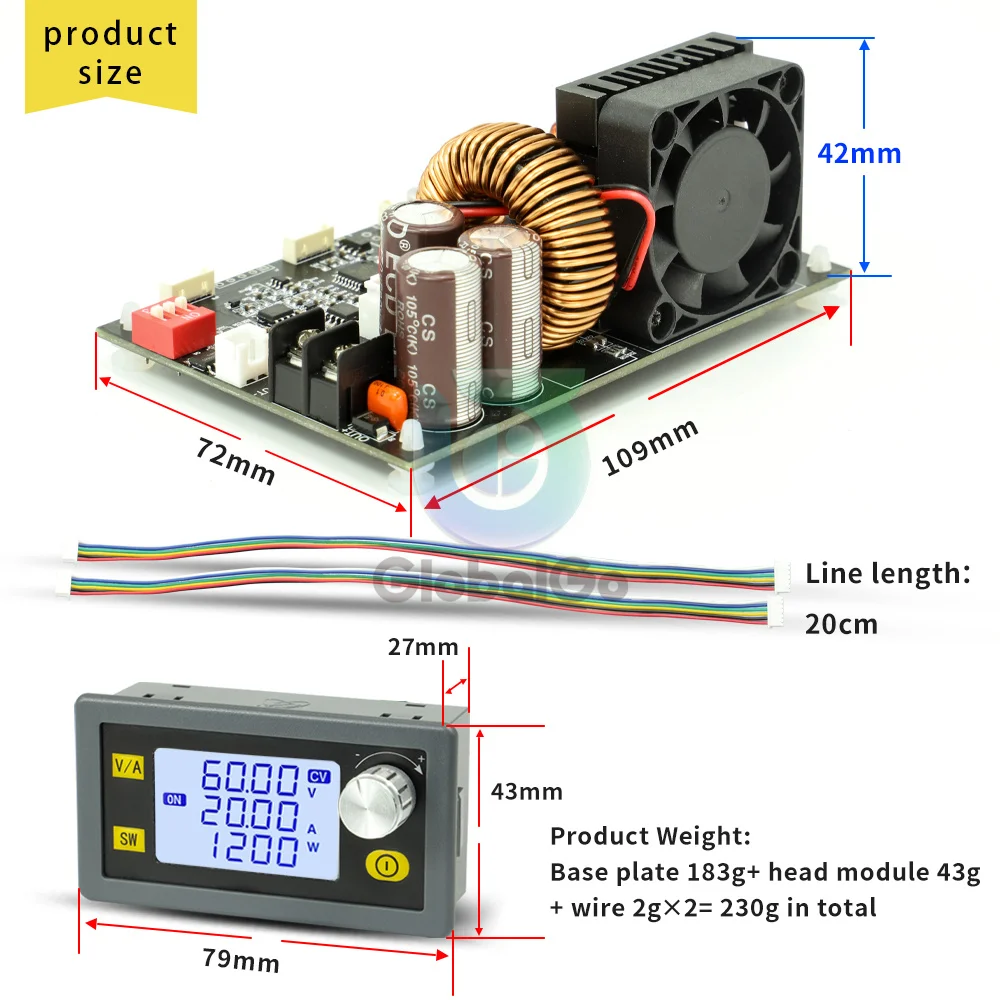 XY6020L CNC Регулируемый понижающий модуль источника питания с постоянным напряжением и постоянным током 20a/1200 Вт