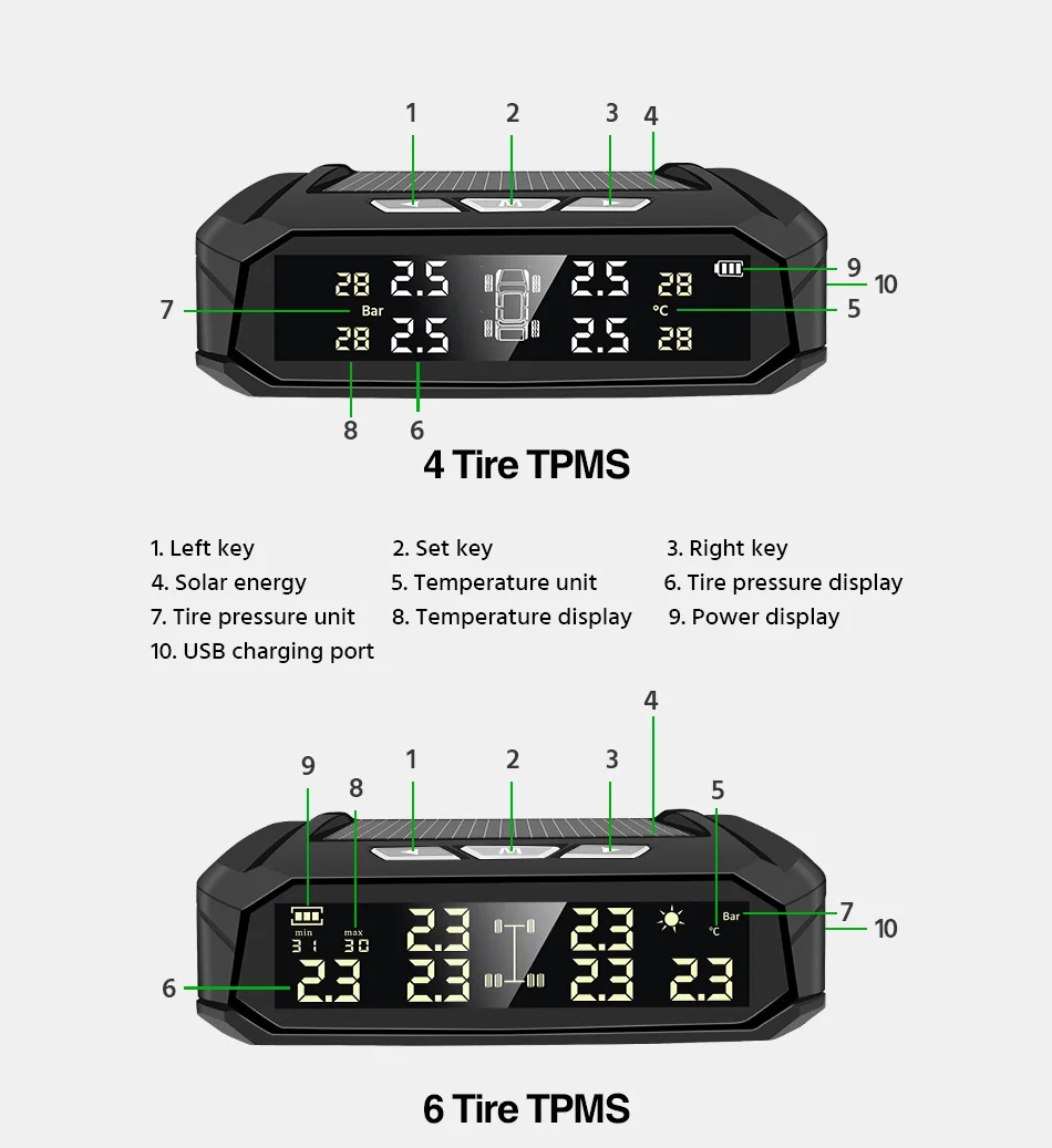 -Цветной ЖК-цифровой дисплей, четкое отображение информации о шинах