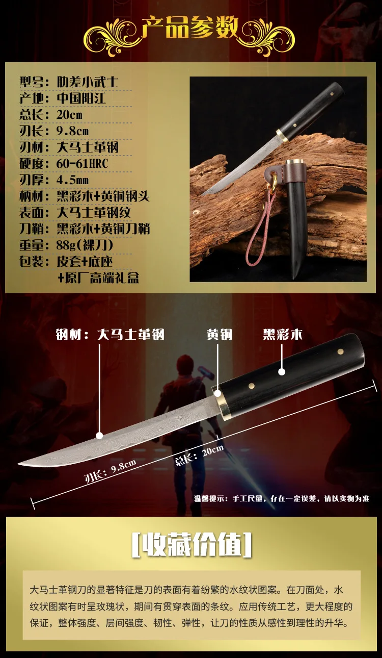 МР. GH brandI, собственный бренд владельца магазина в японском самурайском стиле, маленькое прямое лезвие для улицы, Ручная шлифовка, лезвие из моллюсков с зеркальной полировкой, очень тонкое качество изготовления, материал лезвия импортный D2, твердость достигает 60, термическая обработка вакуумной закалки масла, встроенный Киль в ручку, Ручка имеет дизайн из черного дерева и кусок дерева из ножен, текстура и цвет такие же, драгоценное дерево черного дерева, очарование черного дерева заключается не только в оценке глаз, но и в прикосновении руки. Аромат черного дерева полезен для человеческого тела, и это заставляет вас не отпускать его. Край черного дерева очень острый с вторичным водяным охлаждением под углом 17 °. Зеркальная световая обработка, каждая из которых была неоднократно отполирована и отполирована вручную, чтобы сформировать холодное и яркое лезвие, гладкую поверхность, Отличное ощущение руки, что делает людей яркими перед глазами, Независимо от того, шлифовка лезвия. Полировка лезвия или выбор и изготовление ручки можно наблюдать с большой осторожностью. Средство-это просто хобби, чувство, жизненный настрой, который стоит дать вам знать, как на вкус и качество!