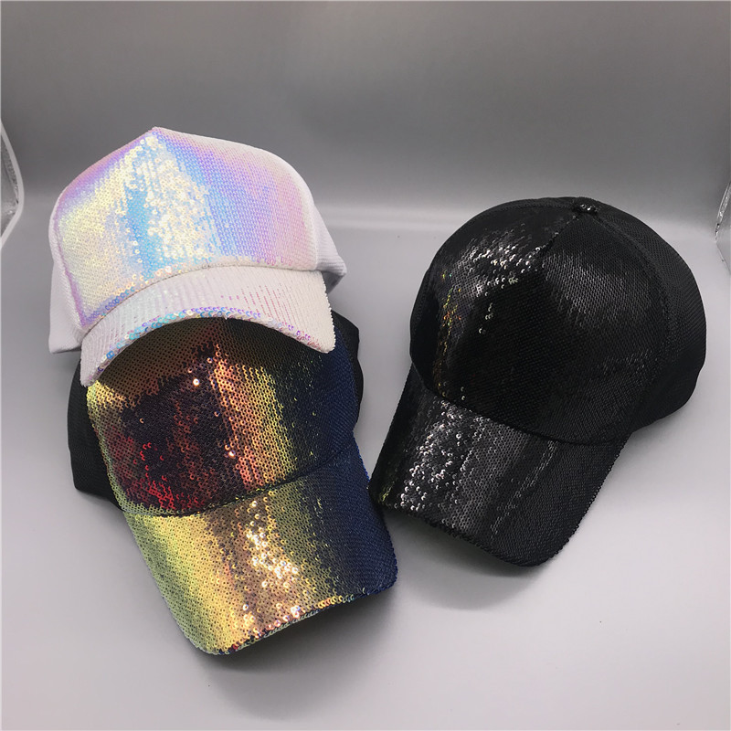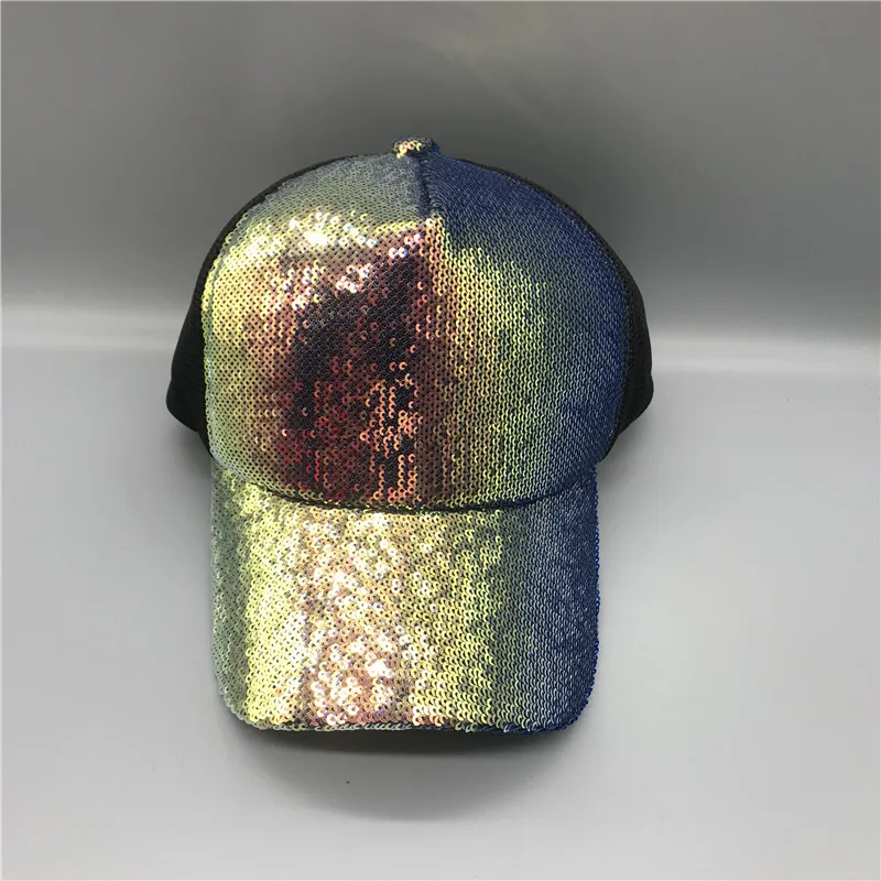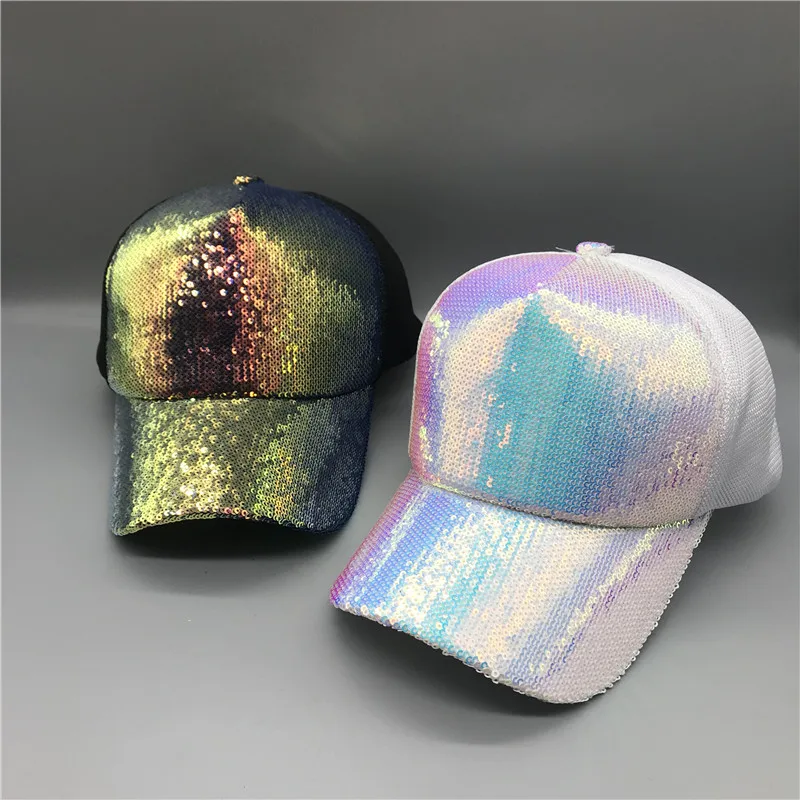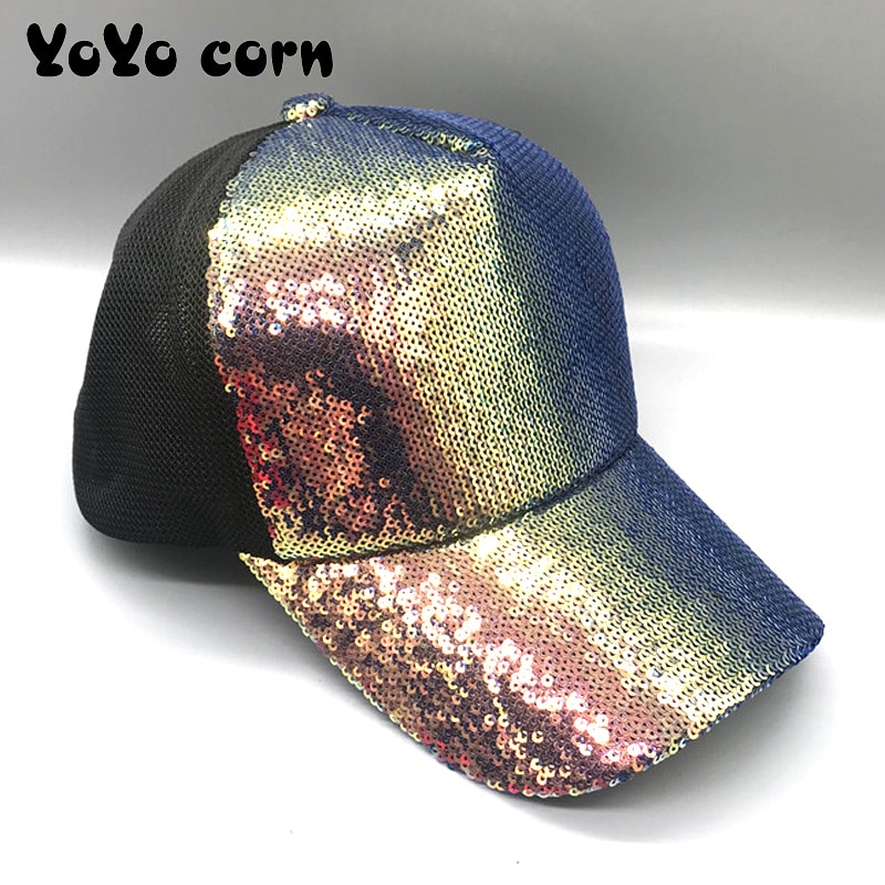 Яркая Регулируемая женская панама YOYOCORN, шляпы для вечеринок, клубов, блестящая сетчатая бейсболка с радужными блестками