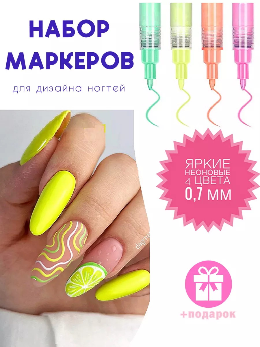 Яркие маркеры для дизайна ногтей 4 шт